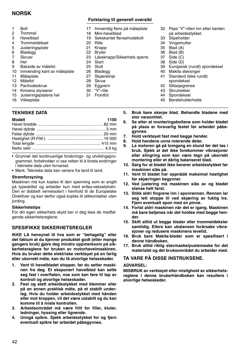 Retrouvez gratuitement la notice de l'appareil 1100 MAKITA au format PDF.