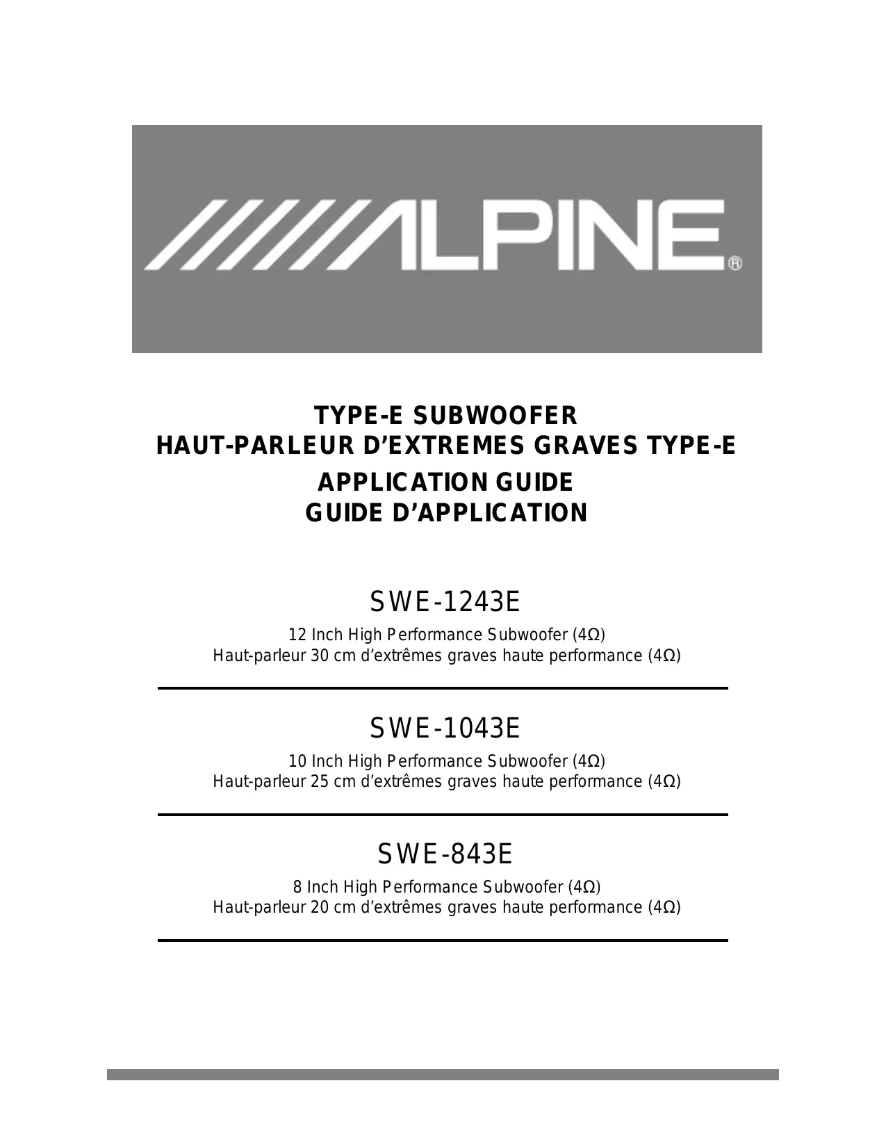 SWE-1243E - Haut-parleur de voiture ALPINE - Notice d'utilisation et mode d'emploi gratuit