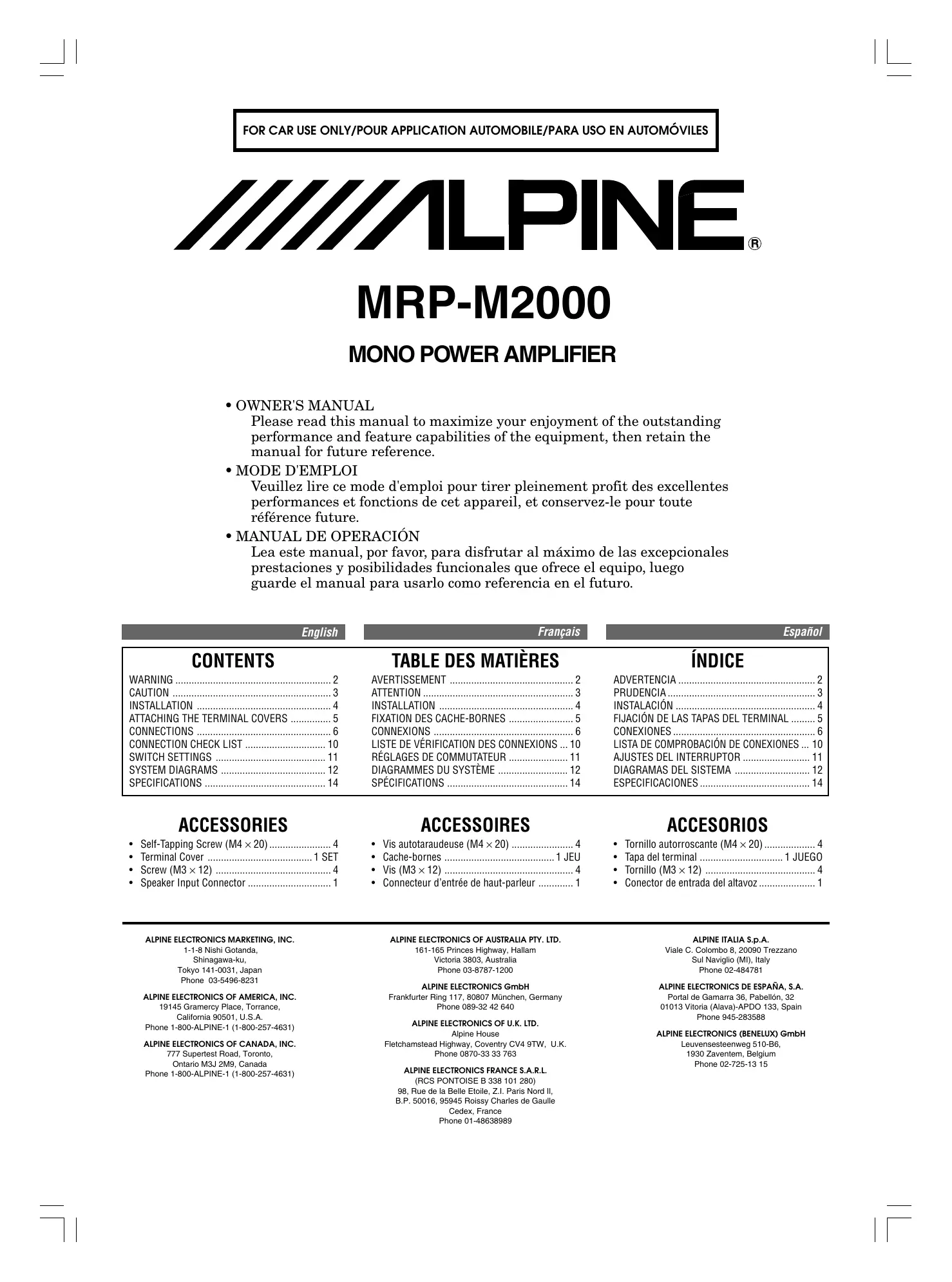MRP-M2000 - Amplificateur de puissance ALPINE - Notice d'utilisation et mode d'emploi gratuit