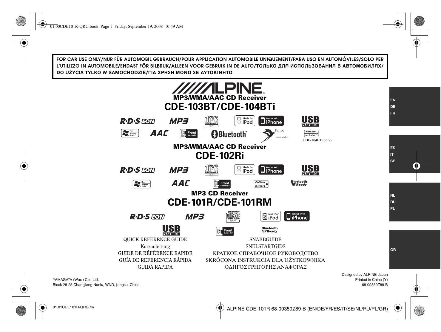 Retrouvez gratuitement la notice de l'appareil CDE-101R ALPINE au format PDF.