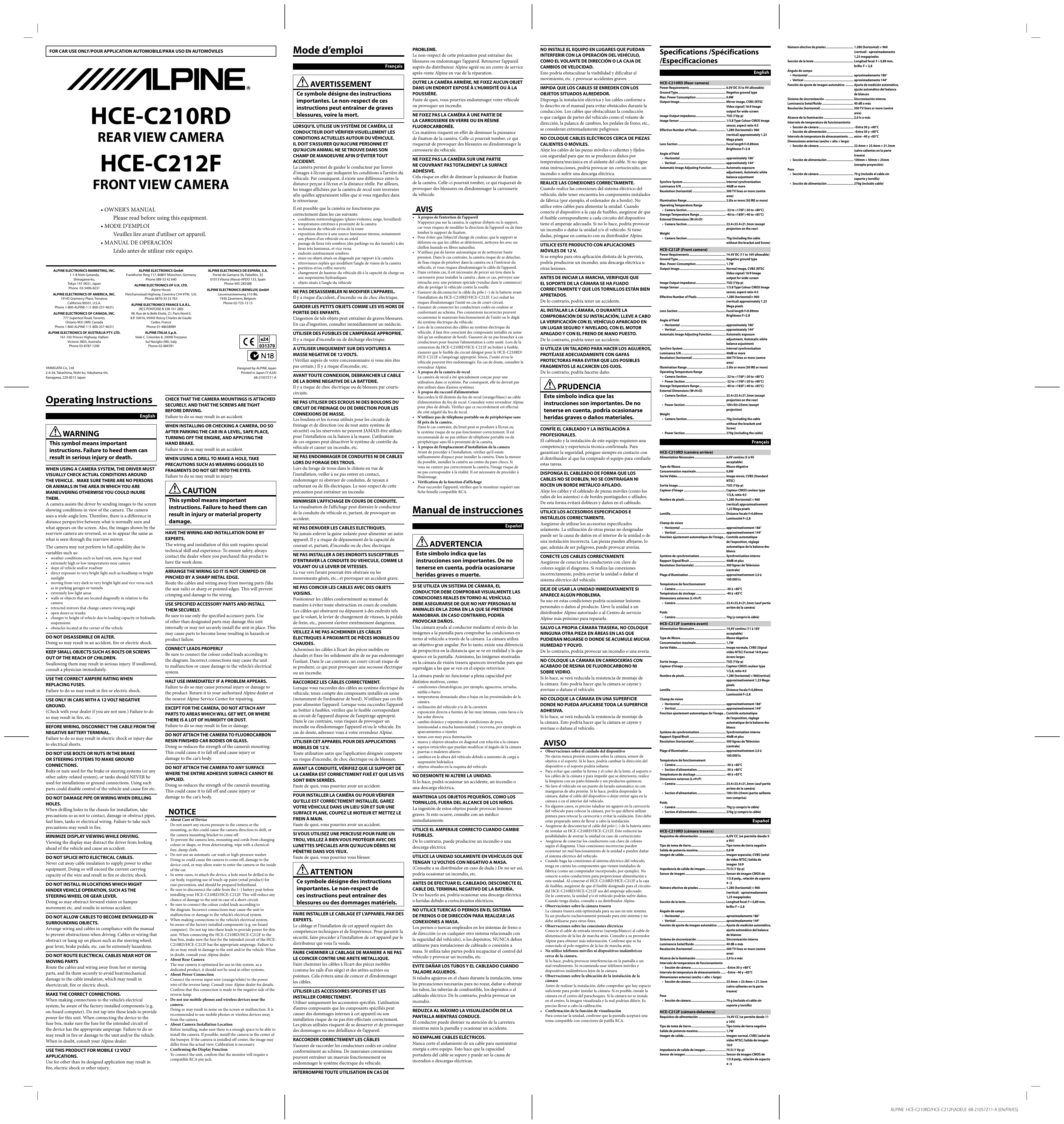 • For information on HCE-C210RDcompatible products, contact your local authorized Alpine dealer or visit the Alpine Website. Français