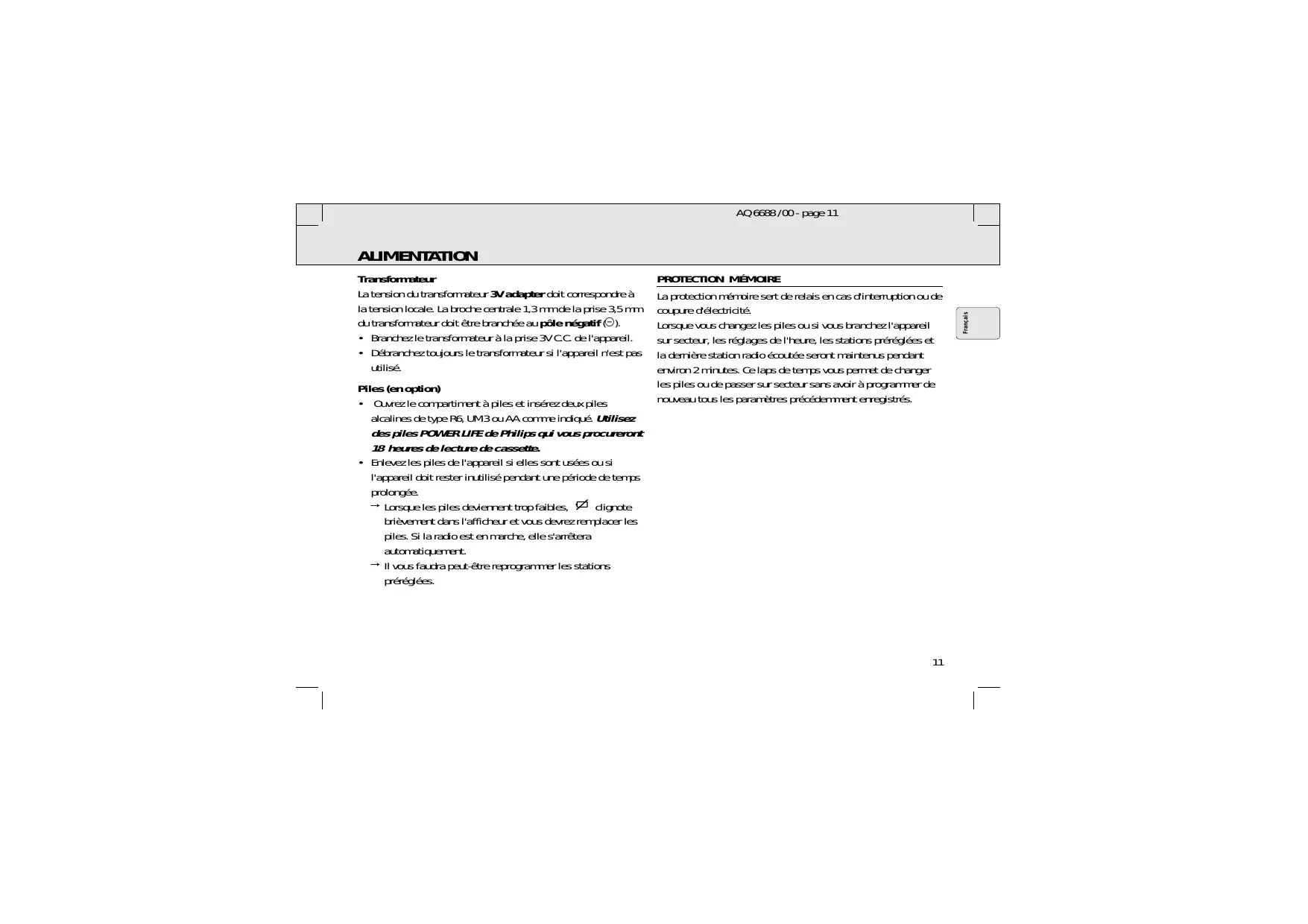 MODE D'EMPLOI AQ6688 PHILIPS