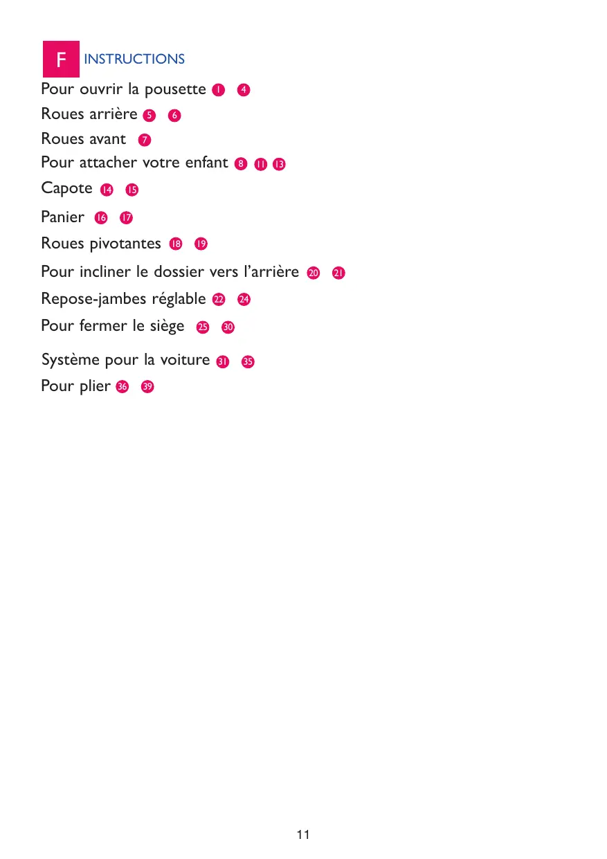 Roues arrière 5 6 Roues avant 7 Pour attacher votre enfant Capote