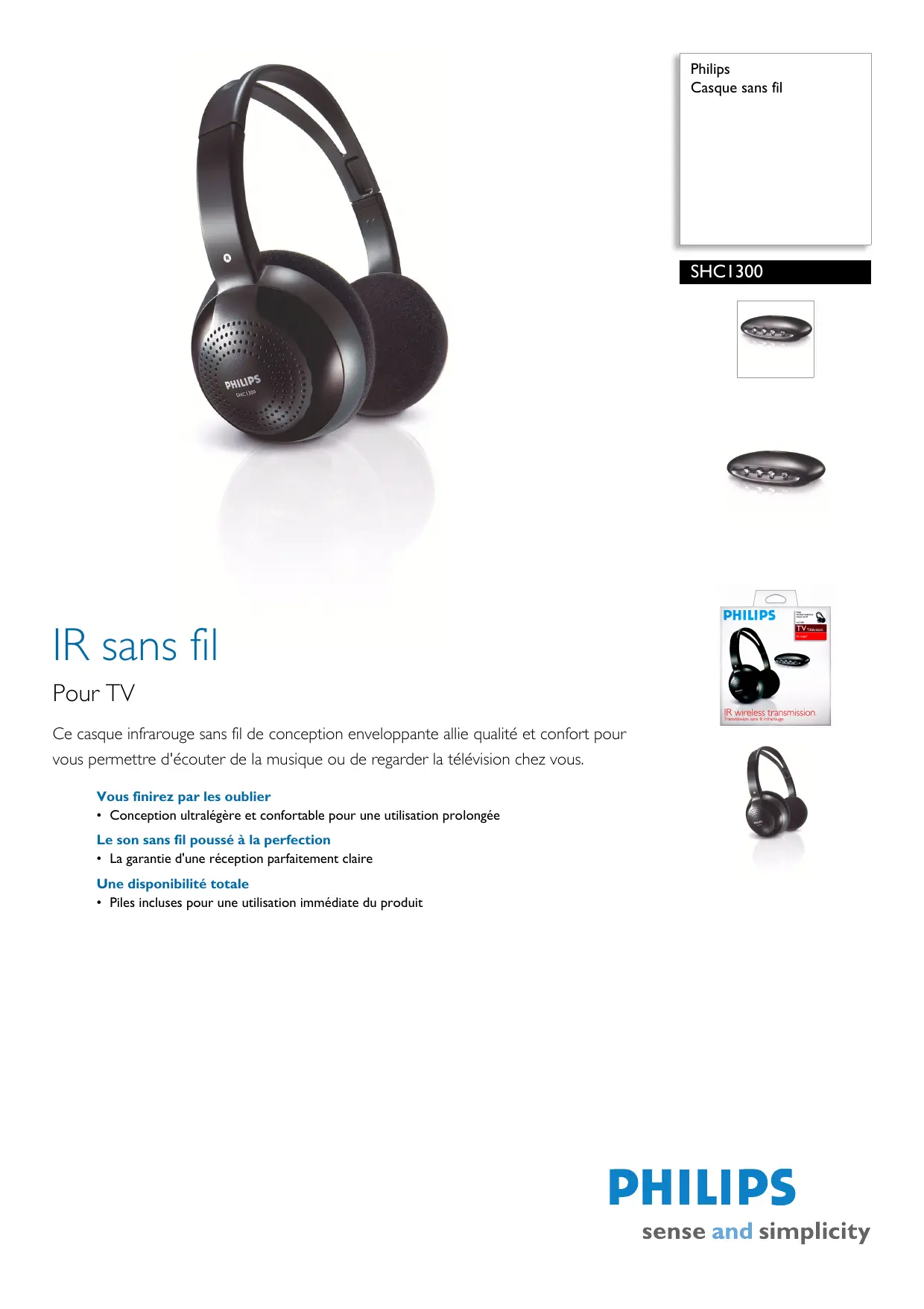 - Piles incluses pour une utilisation immédiate du produit SHC1300/05 Casque sans fil Spécifications Points forts du produit Sound
