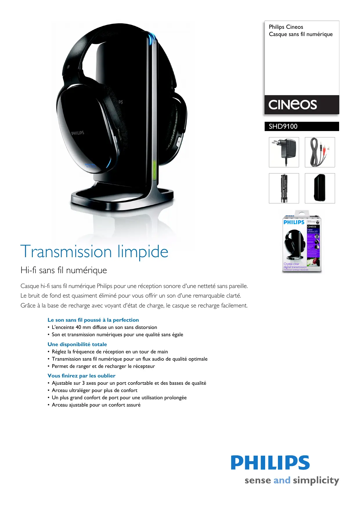 - Arceau ajustable pour un confort assuré SHD9100/00 Casque sans fil numérique Caractéristiques Points forts Accessoires