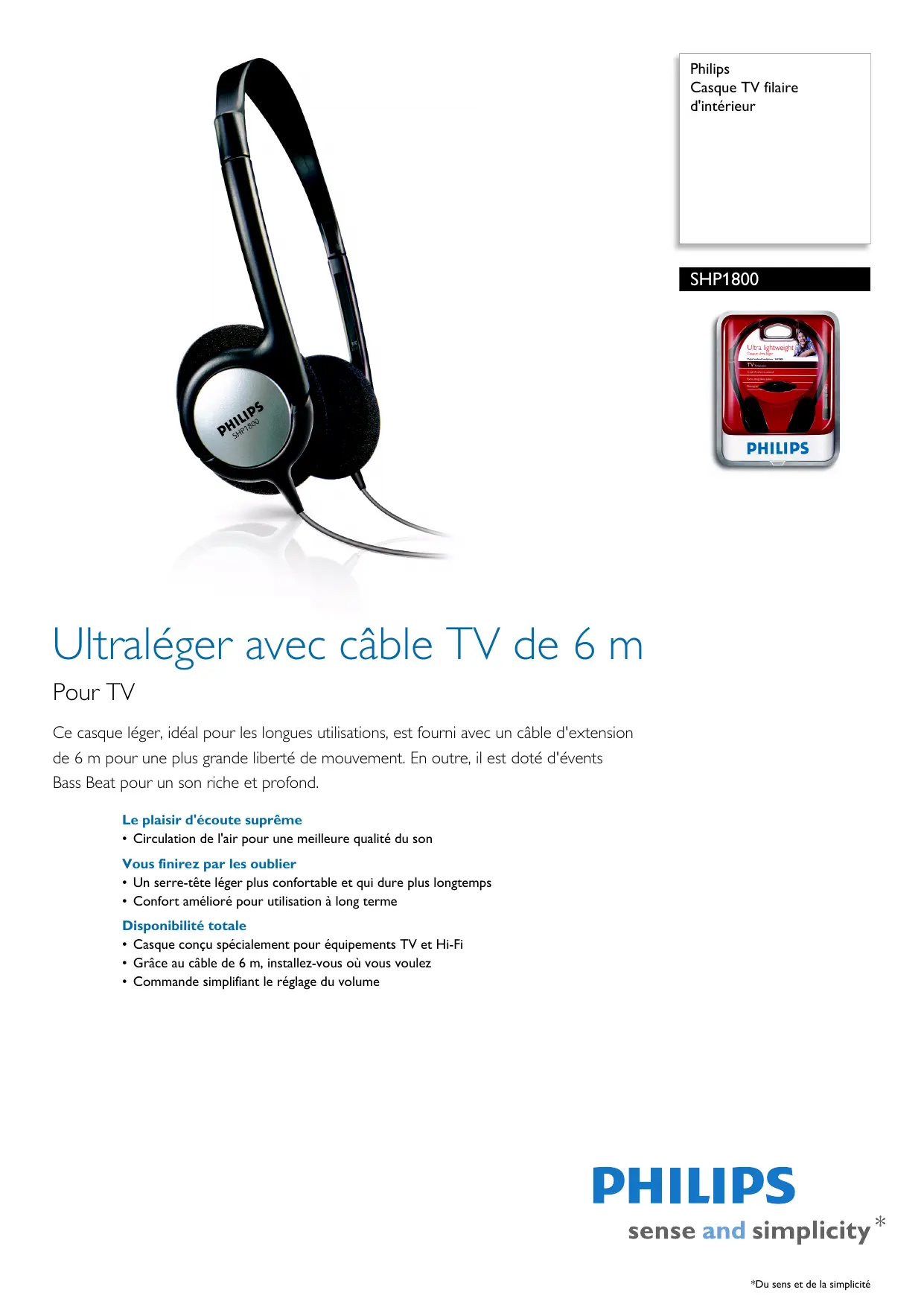 SHP1800 - Casque audio PHILIPS - Notice d'utilisation et mode d'emploi gratuit