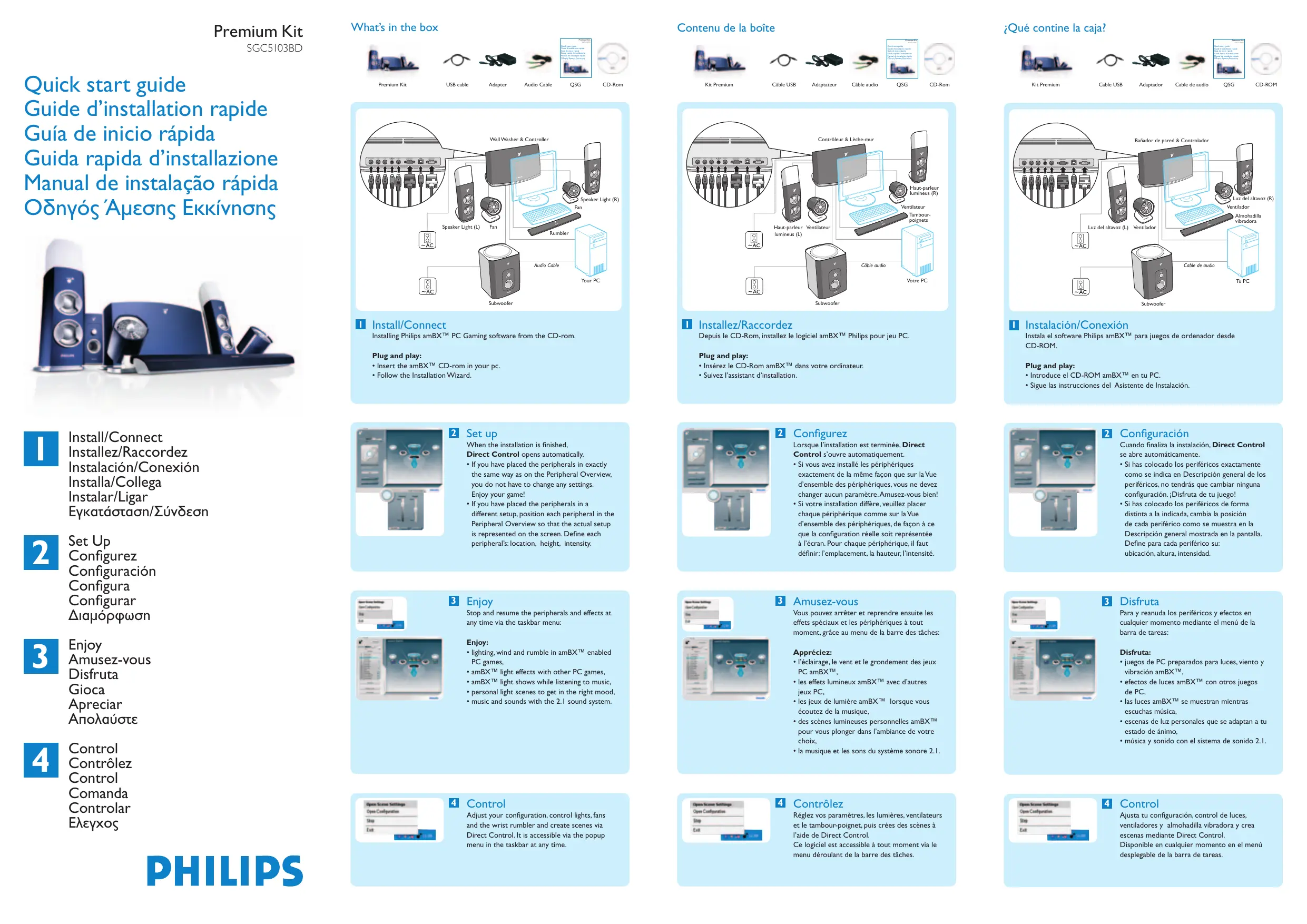 Depuis le CD-Rom, installez le logiciel amBX™ Philips pour jeu PC. Set up Tu PC Subwoofer Installing Philips amBX™ PC Gaming software from the CD-rom.