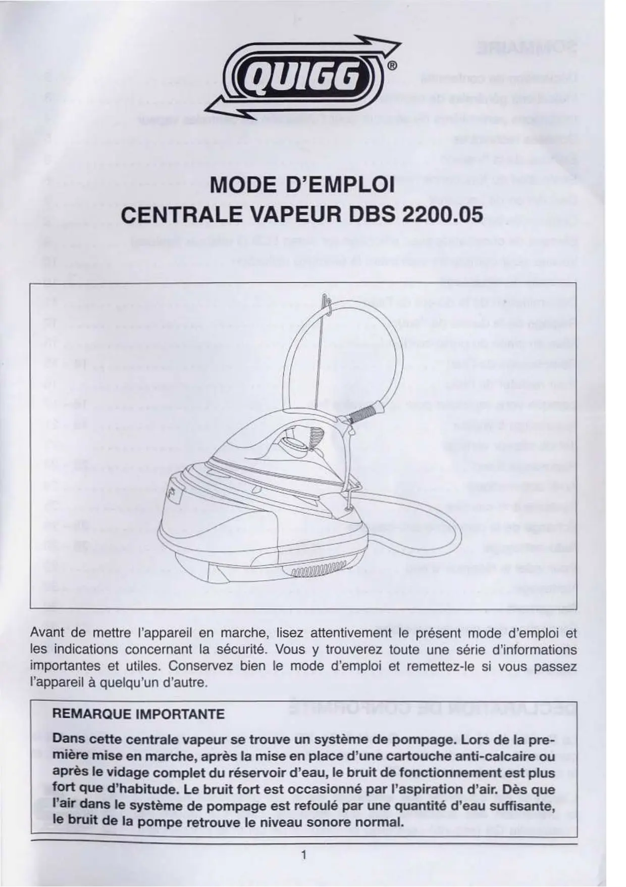 DBS2200.05 - Centrale vapeur QUIGG - Notice d'utilisation et mode d'emploi gratuit