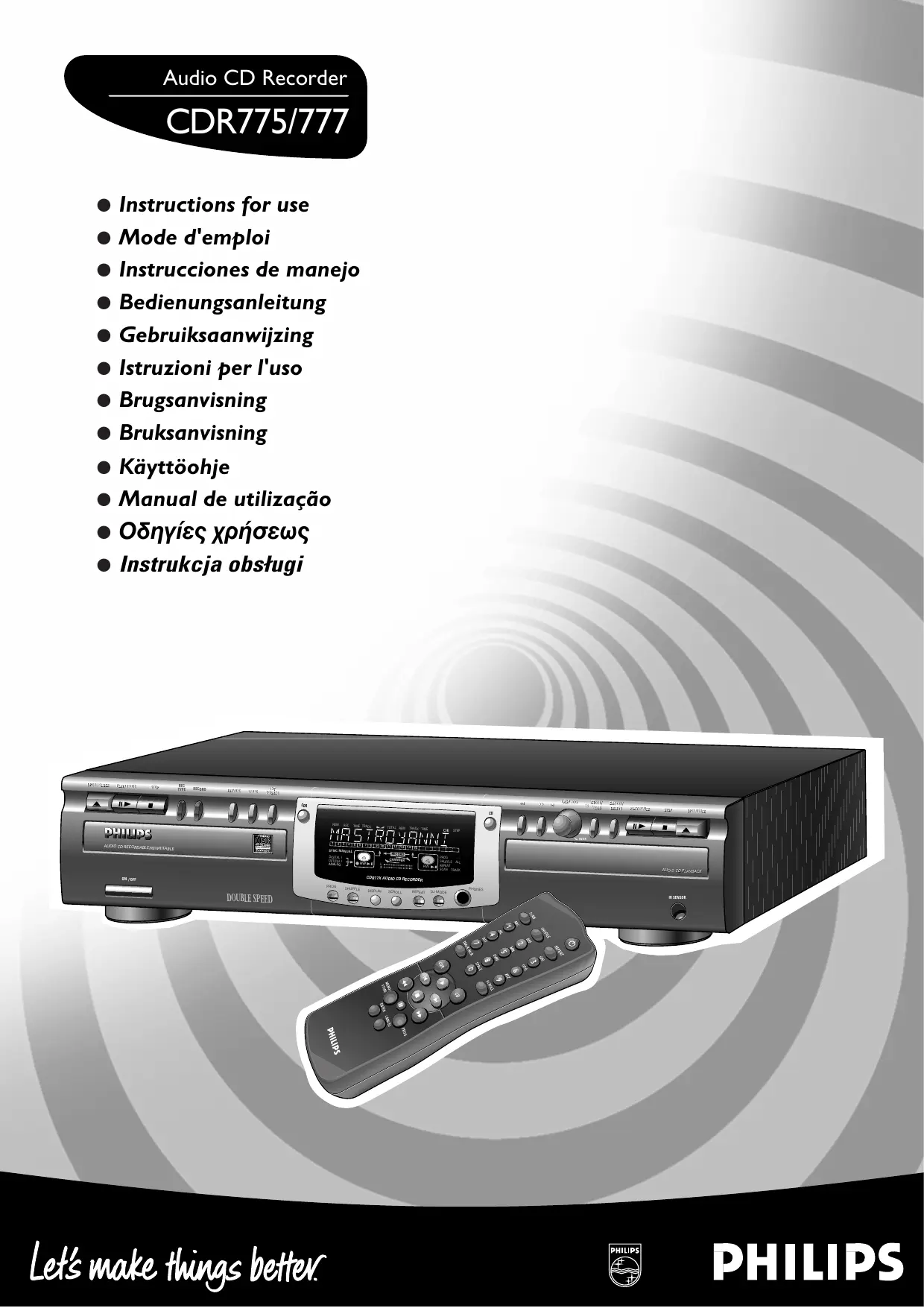 CDR 775 - Enregistreur CD PHILIPS - Notice d'utilisation et mode d'emploi gratuit