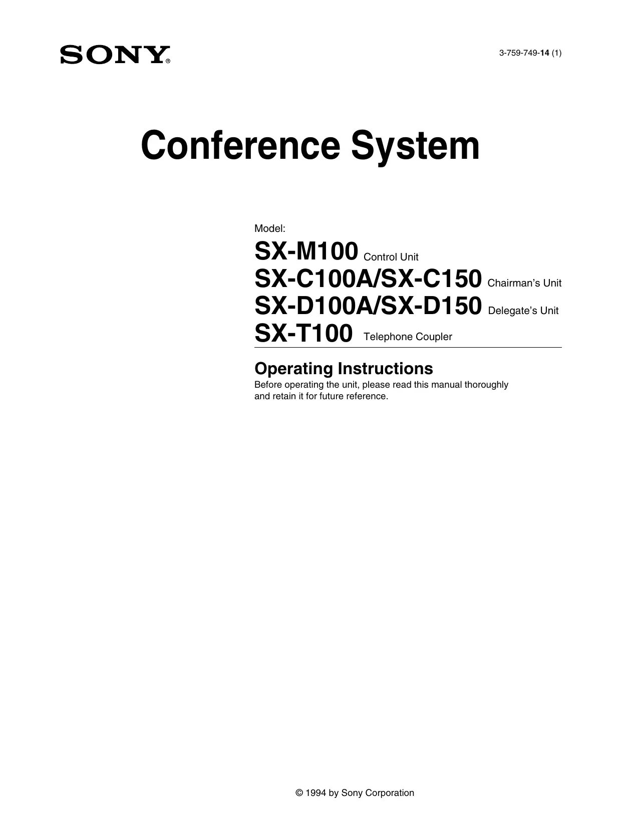 Téléchargez la notice de votre Système de conférence au format PDF gratuitement ! Retrouvez votre notice SX-T100 - SONY et reprennez votre appareil électronique en main. Sur cette page sont publiés tous les documents nécessaires à l'utilisation de votre appareil SX-T100 de la marque SONY.
