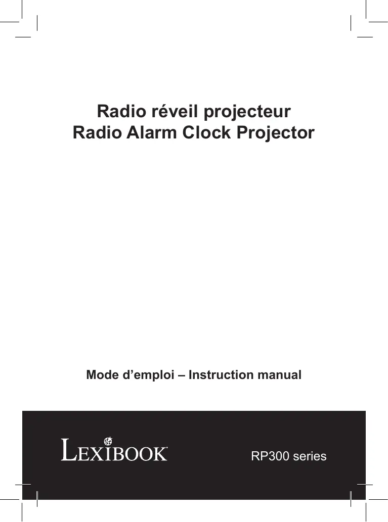 Ce produit est couvert par une garantie de 1 an. Pour tout service après-vente et pour toute plainte intervenant pendant la période de garantie, adressez-vous à votre magasin de vente en présentant une preuve d’achat valide. Notre garantie couvre tous les défauts liés aux matériaux et à la fabrication, mais exclut toute détérioration résultant du non-respect des instructions du mode d’emploi ou d’une négligence de la part de l’utilisateur (démontage, exposition à la chaleur ou à l’humidité, etc.). Il est recommandé de conserver l’emballage pour référence ultérieure. Dans un souci d’amélioration de nos services, nous procédons régulièrement à des modifications des couleurs et de certains détails du produit montré sur l’emballage. NOTE: Conservez ce mode d’emploi car il contient des informations importantes. Référence : RP300series Conçu et développé en Europe – Fabriqué en Chine ©2009 LEXIBOOK® Lexibook S.A 2 avenue de Scandinavie 91953 Courtaboeuf Cedex France Service consommateurs à votre écoute : 0892 23 27 26 (0,34 € TTC/min) www.lexibook.com Ce produit n’est pas un jouet Informations sur la protection de l’environnement Tout appareil électrique usé est une matière recyclable et ne devrait pas faire partie des ordures ménagères ! Nous vous demandons de bien vouloir nous soutenir en contribuant activement au ménagement des ressources et à la protection de l’environnement en déposant cet appareil dans des sites de collecte (si existants).