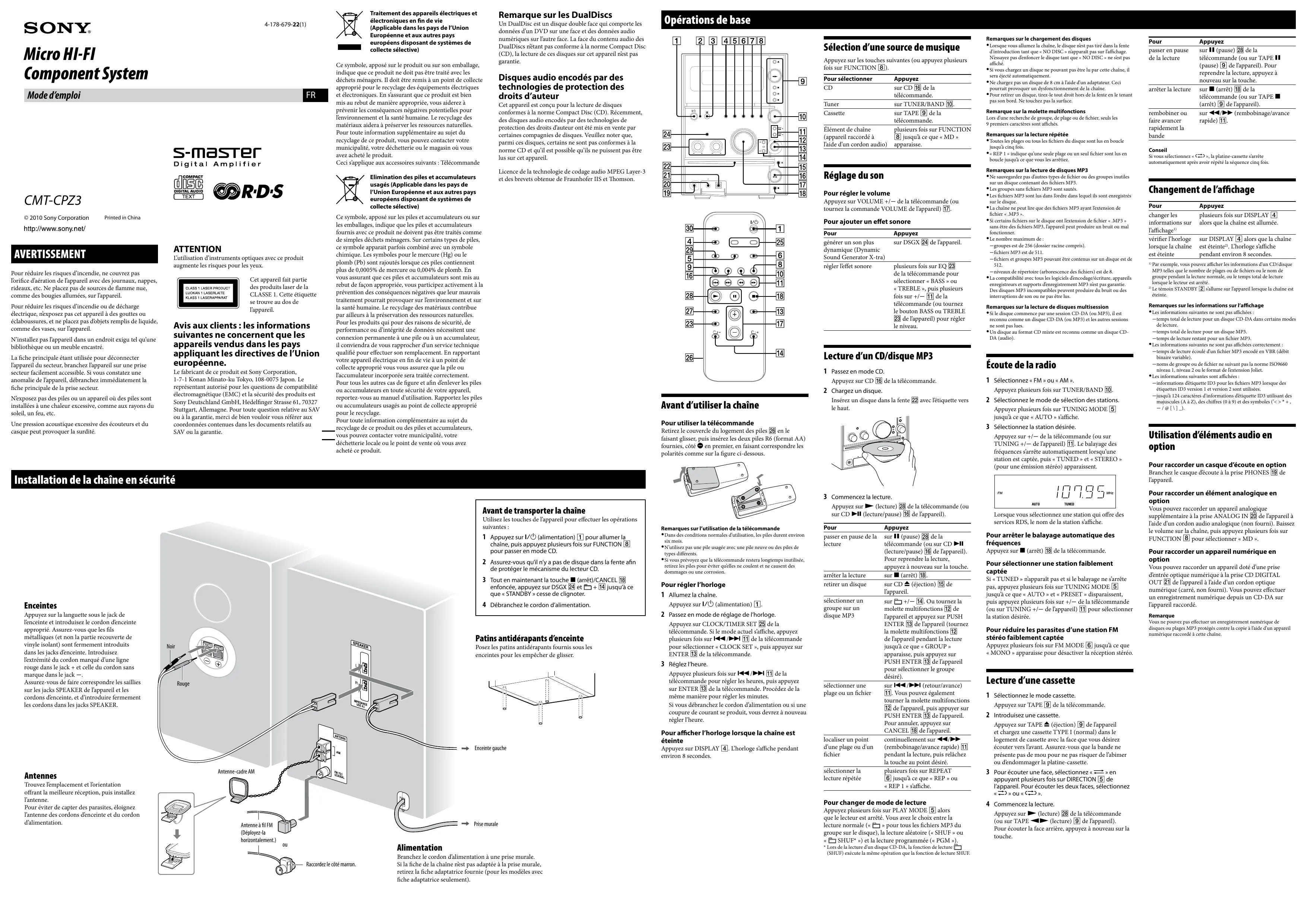 MODE D'EMPLOI CMT-CPZ3 SONY