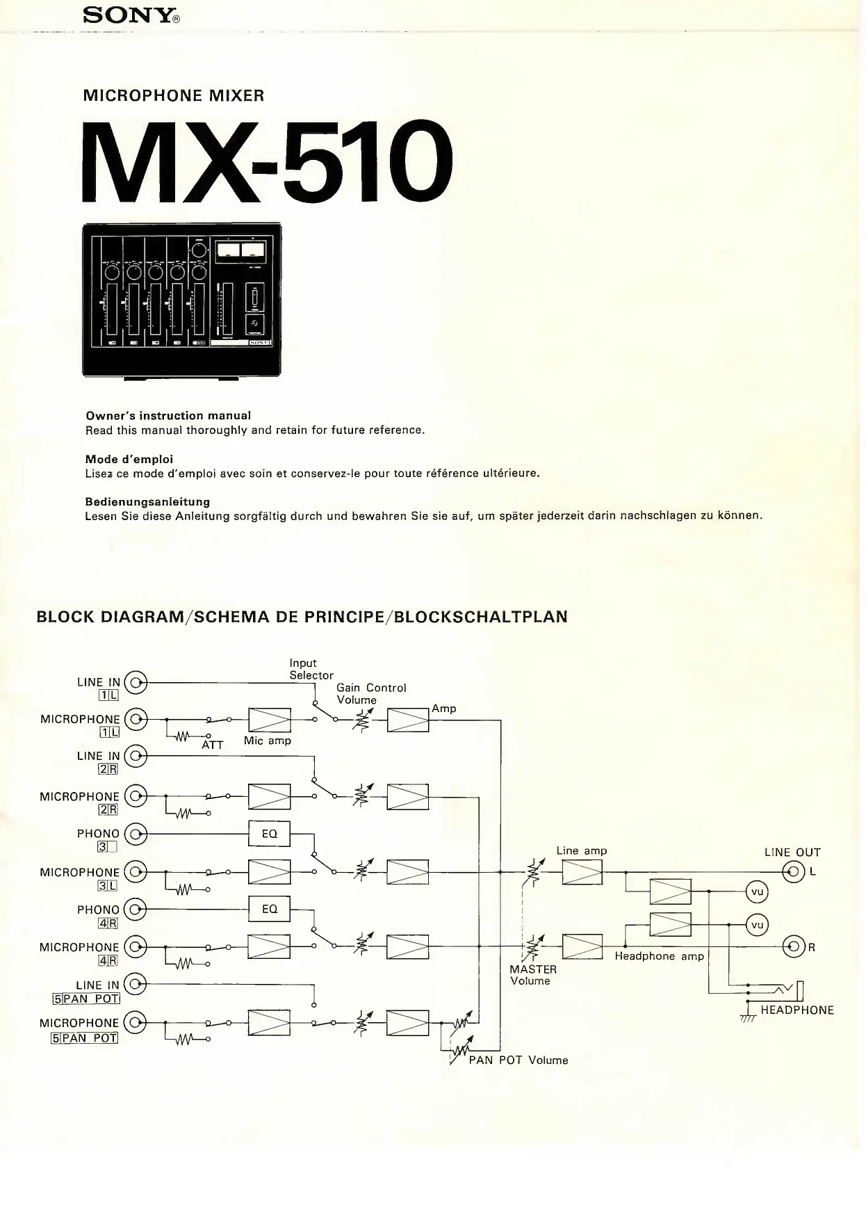 MX-510 - Table de mixage audio SONY - Notice d'utilisation et mode d'emploi gratuit