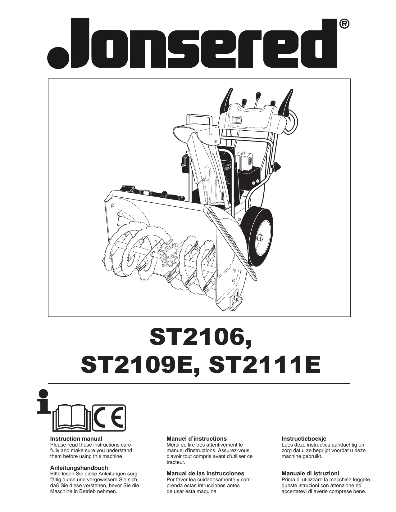 ST 2109 E - Déneigeuse JONSERED - Notice d'utilisation et mode d'emploi gratuit