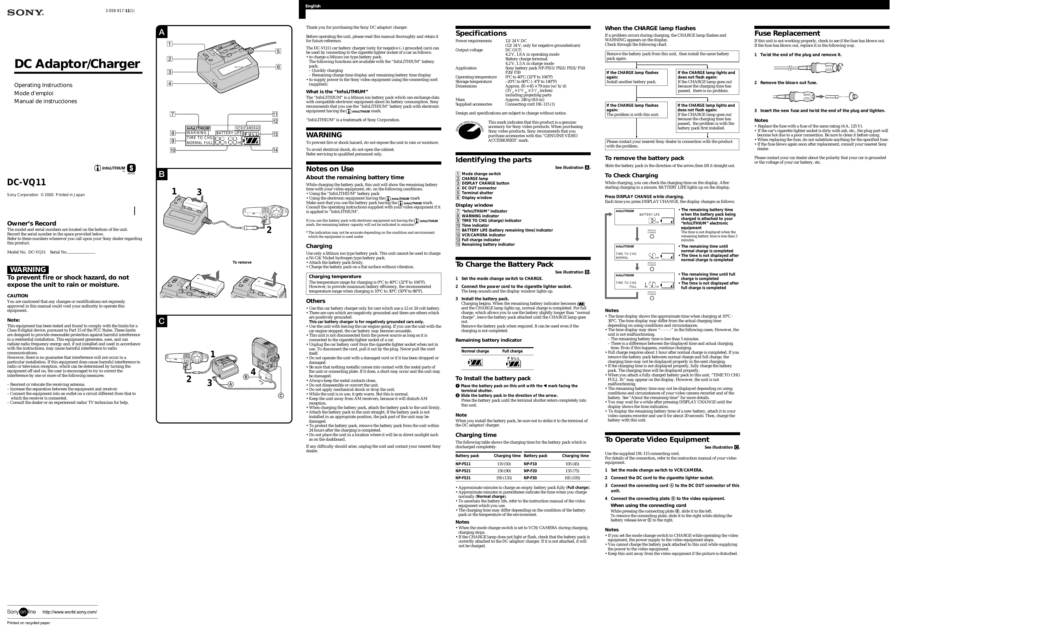 DC-VQ11 - Chargeur électrique SONY - Notice d'utilisation et mode d'emploi gratuit