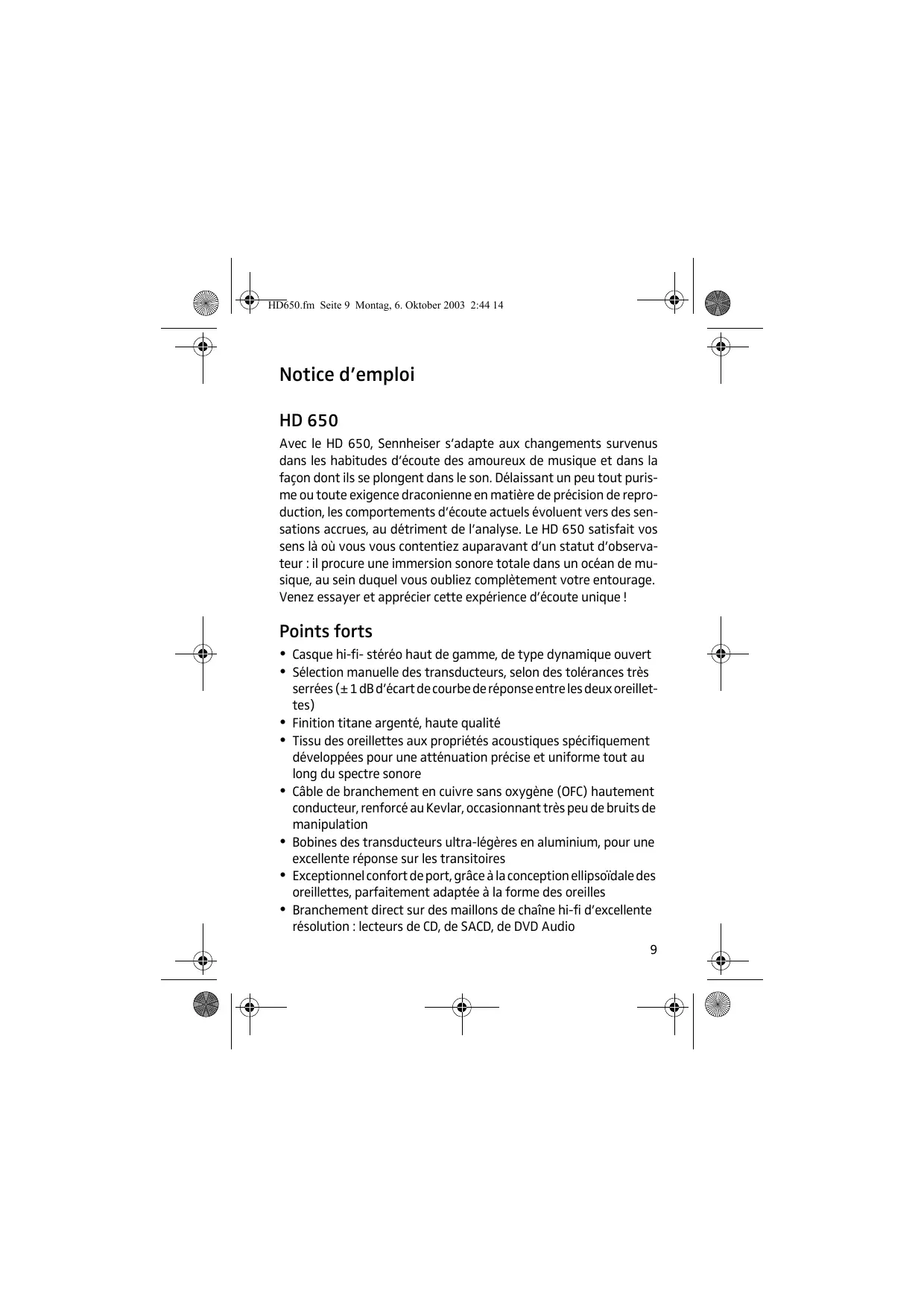MODE D'EMPLOI HD 650 SENNHEISER