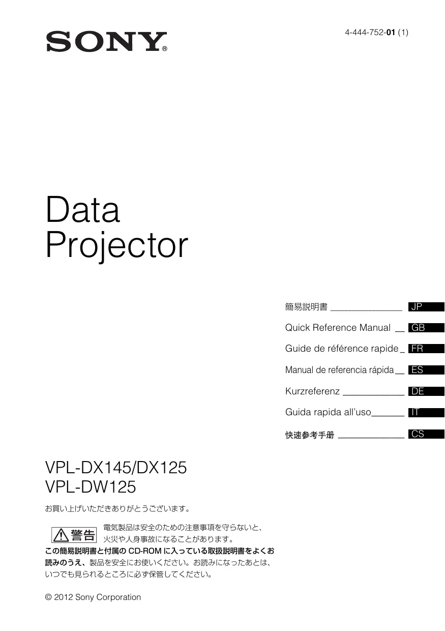 Retrouvez gratuitement la notice de l'appareil VPL-DW125 SONY au format PDF.