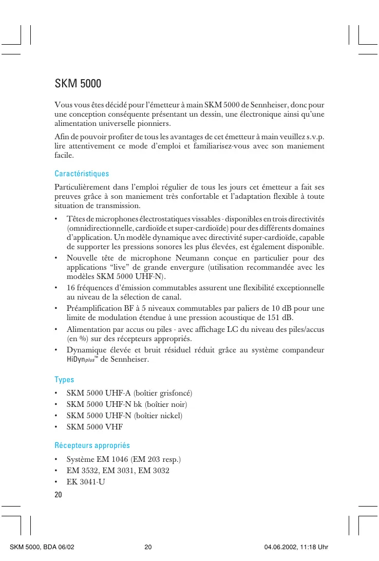 MODE D'EMPLOI SKM 5000 SENNHEISER