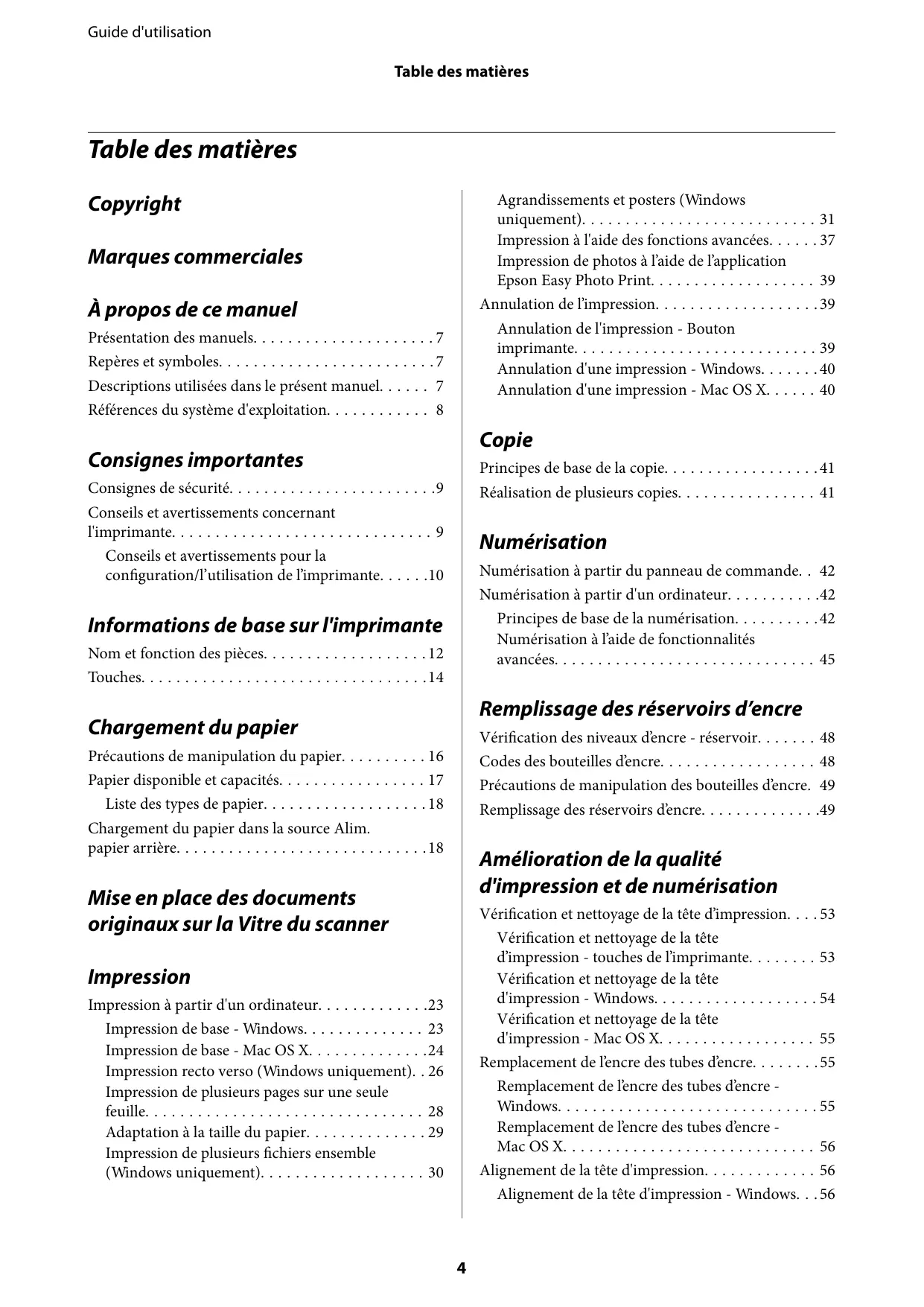 - Guide d'utilisation Table des matières Table des matières Agrandissements et posters (Windows uniquement) p. 31