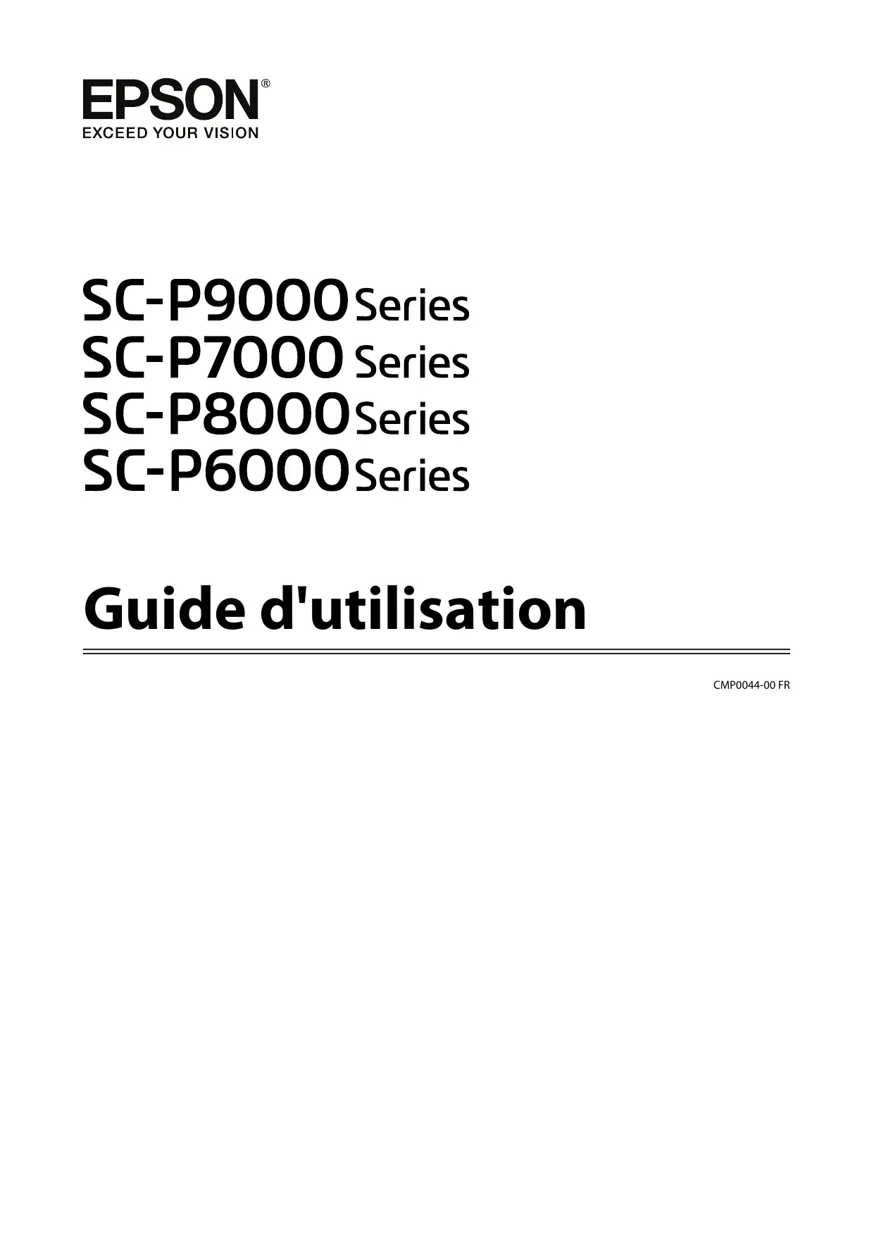 Sauf mention contraire, les images de la présente documentation illustrent le modèle SC-P9000 Series. Sauf indication contraire, les captures d'écran illustrent le jeu d'encre violette utilisé avec SC-P9000 Series.