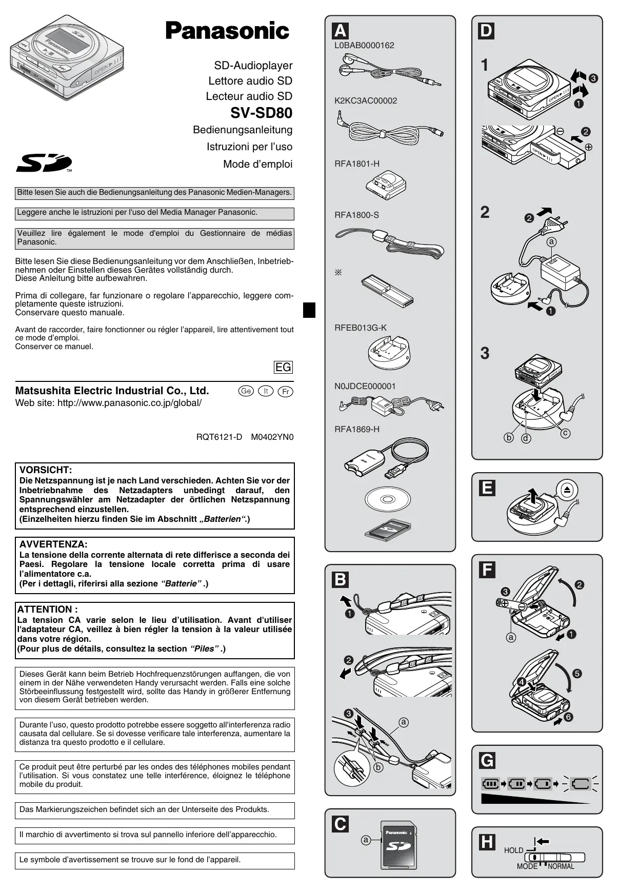 SV-SD80EG - Lecteur mp3 PANASONIC - Notice d'utilisation et mode d'emploi gratuit
