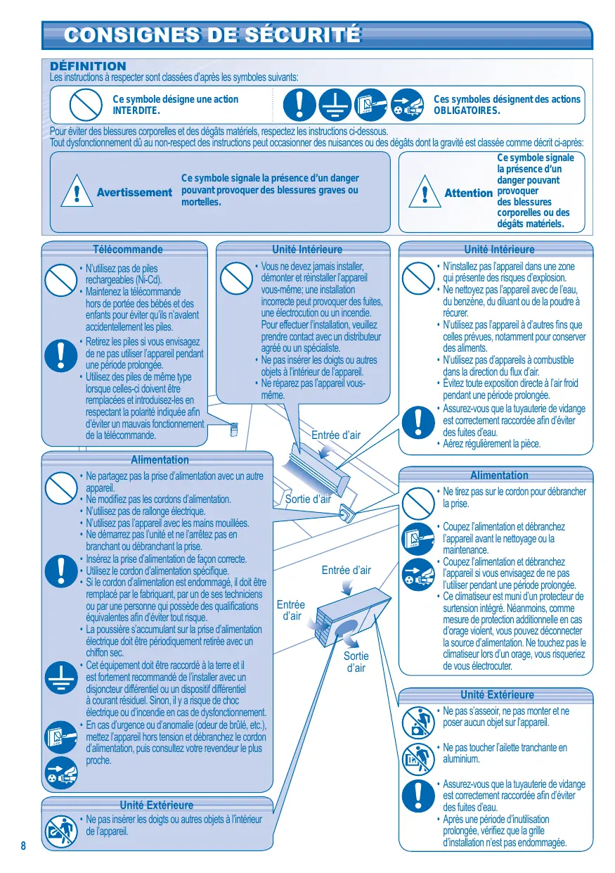 | Entretien et nettoyage | Filtres à nettoyer régulièrement, évacuation de l'eau condensée |