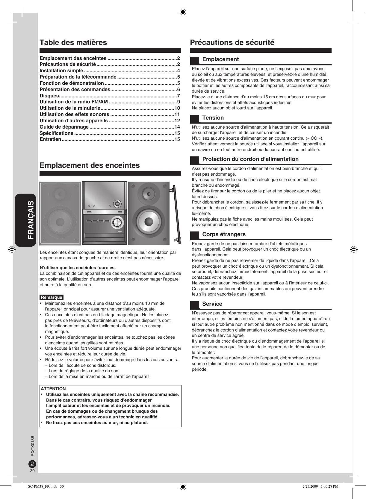 SC-PM38_FR.indb 30 2/25/2009 5:00:28 PM AVERTISSEMENT! POUR RÉDUIRE LES RISQUES D’INCENDIE, D’ÉLECTROCUTION OU DE DOMMAGES AU PRODUIT,