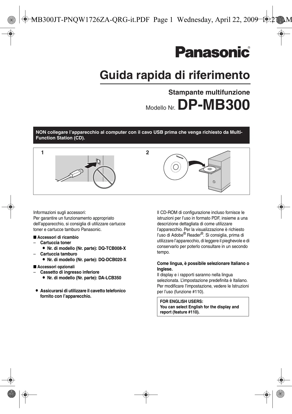 Retrouvez gratuitement la notice de l'appareil DPMB300JT PANASONIC au format PDF.