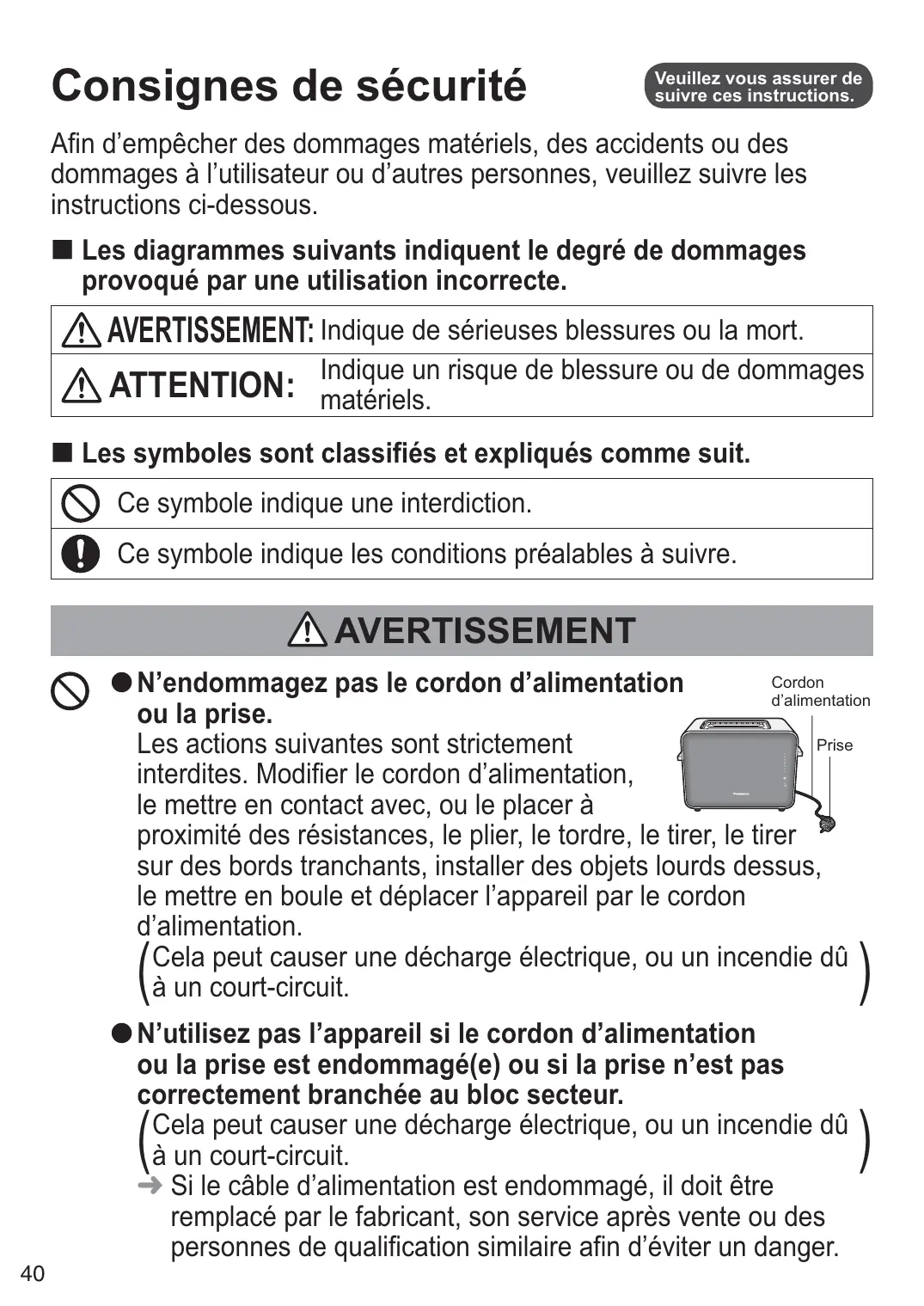 AVERTISSEMENT s graves ou de mort.
