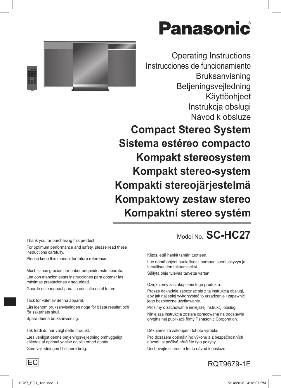 Retrouvez gratuitement la notice de l'appareil SC-HC27 PANASONIC au format PDF.