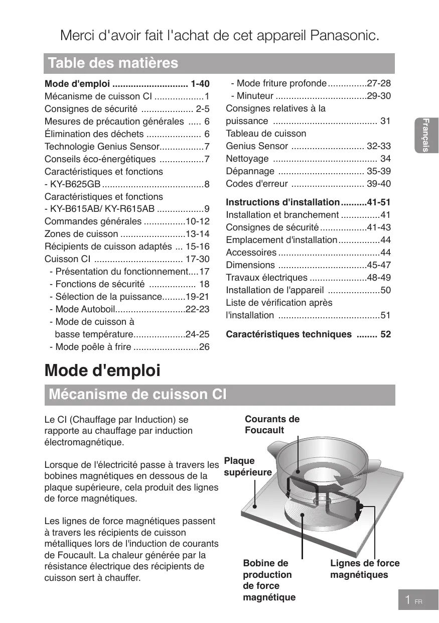 KYB615AB - Plaque de cuisson PANASONIC - Notice d'utilisation et mode d'emploi gratuit