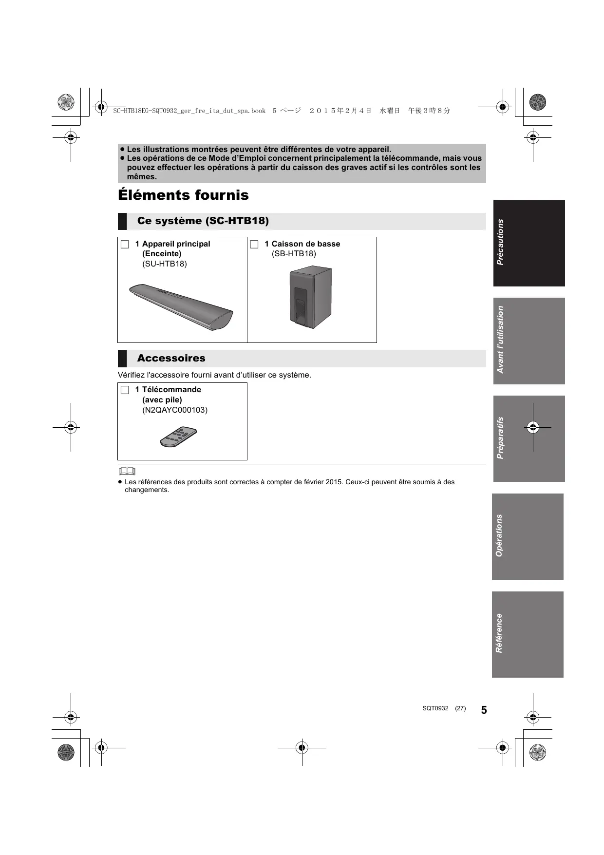 ≥ Les opérations de ce Mode d’Emploi concernent principalement la télécommande, mais vous pouvez effectuer les opérations à partir du caisson des graves actif si les contrôles sont les mêmes.