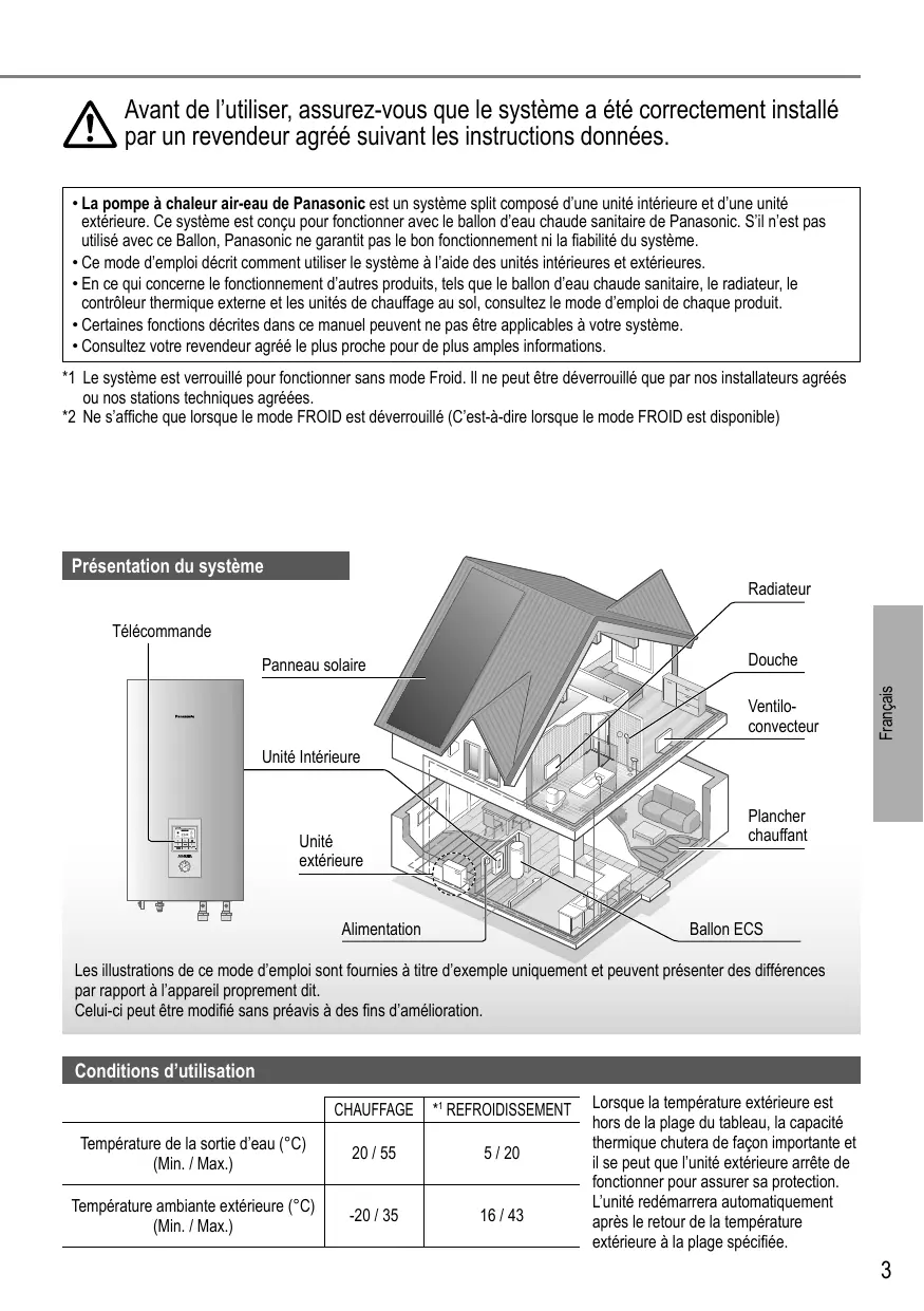 *1 Le système est verrouillé pour fonctionner sans mode FROID. Il ne peut être déverrouillé que par nos installateurs agréés ou nos stations techniques agréées.