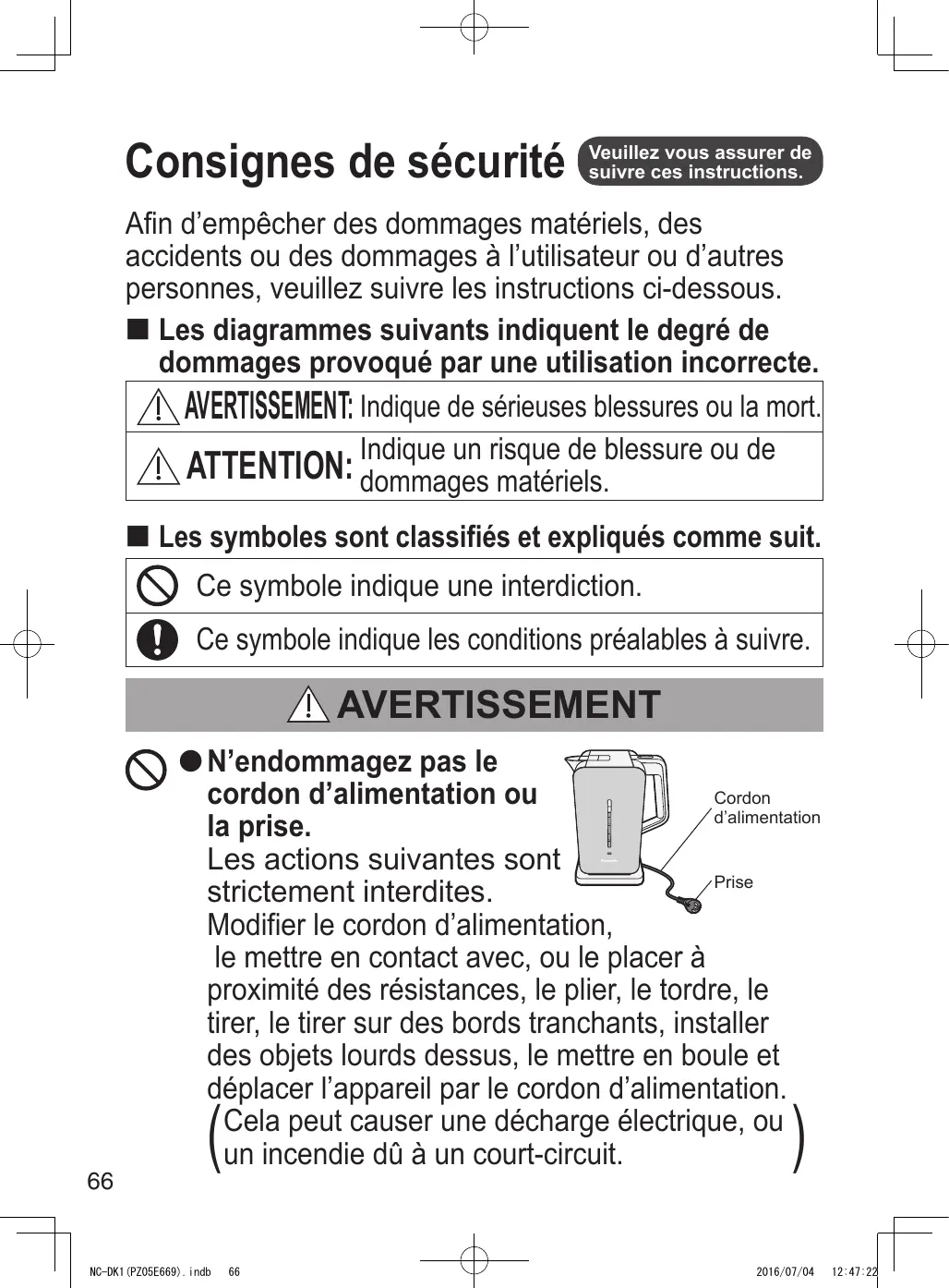 12:47:06 Safety Precautions qqDo not pour hot water or move the qqBeware when pouring hot water. Pour Consignes de sécurité Veuillez vous assurer de suivre ces instructions. Afin d’empêcher des dommages matériels, des accidents ou des dommages à l’utilisateur ou d’autres personnes, veuillez suivre les instructions ci-dessous. es diagrammes suivants indiquent le degré de dommages provoqué par une utilisation incorrecte.