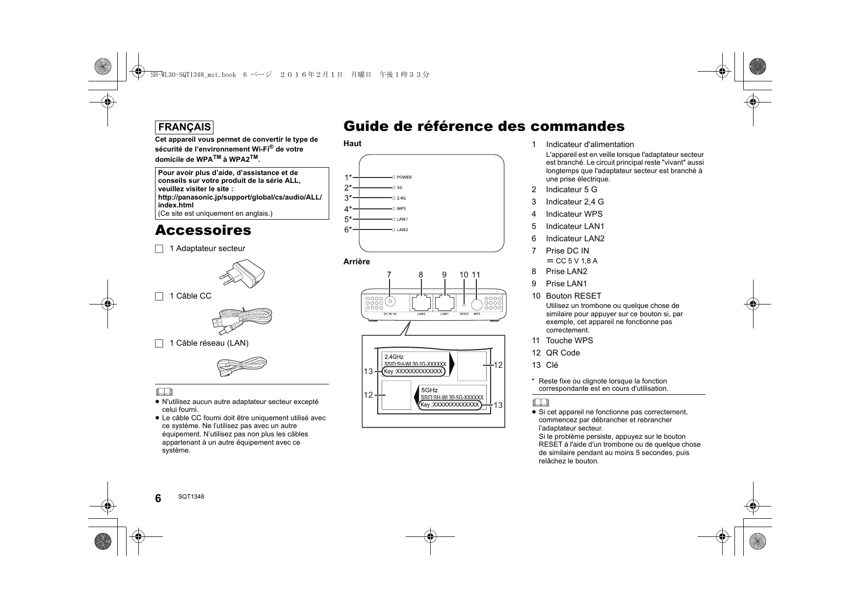 SHWL30EC - Point d'accès Wi-Fi PANASONIC - Notice d'utilisation et mode d'emploi gratuit