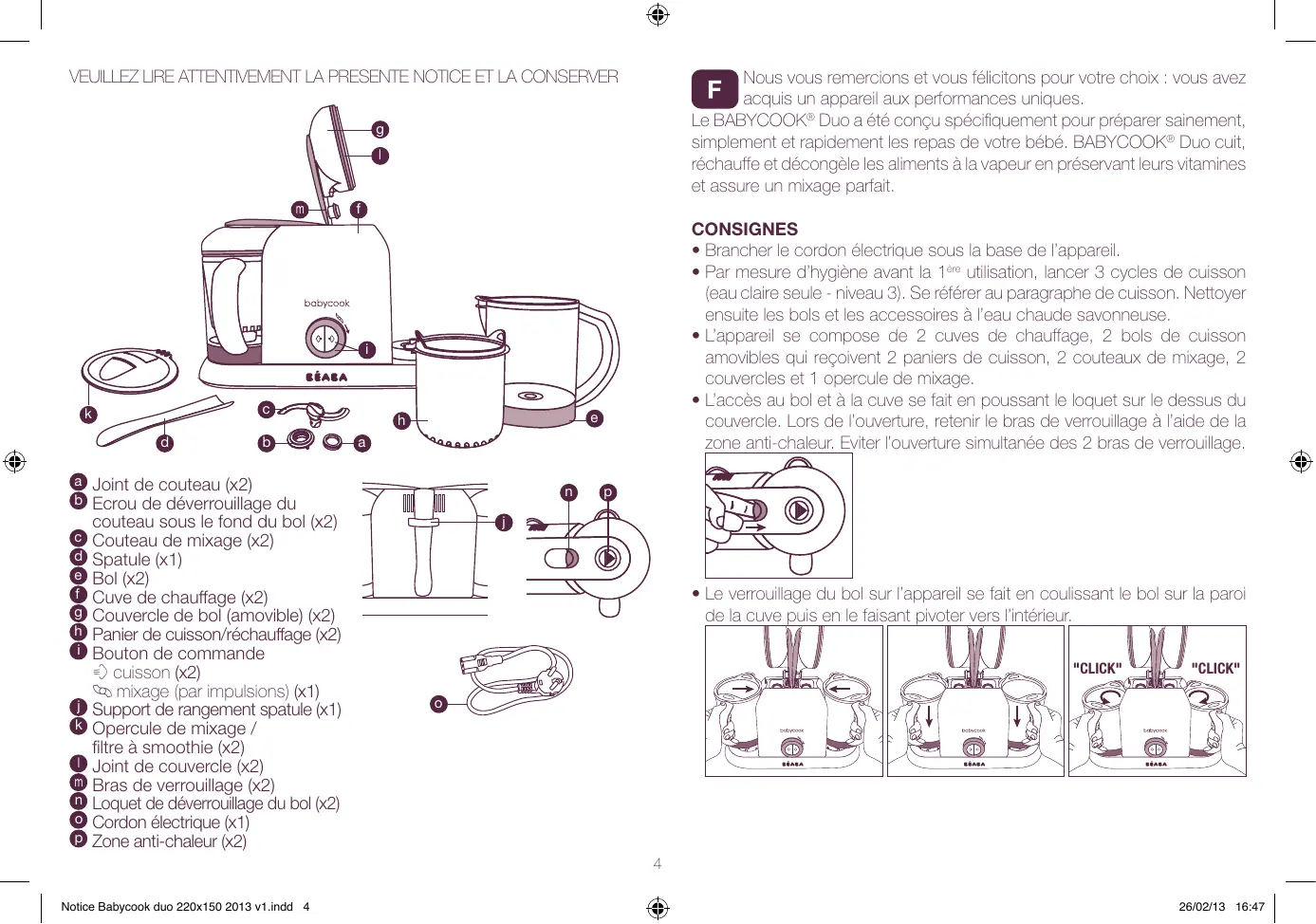 Retrouvez gratuitement la notice de l'appareil BABYCOOK DUO BEABA au format PDF.