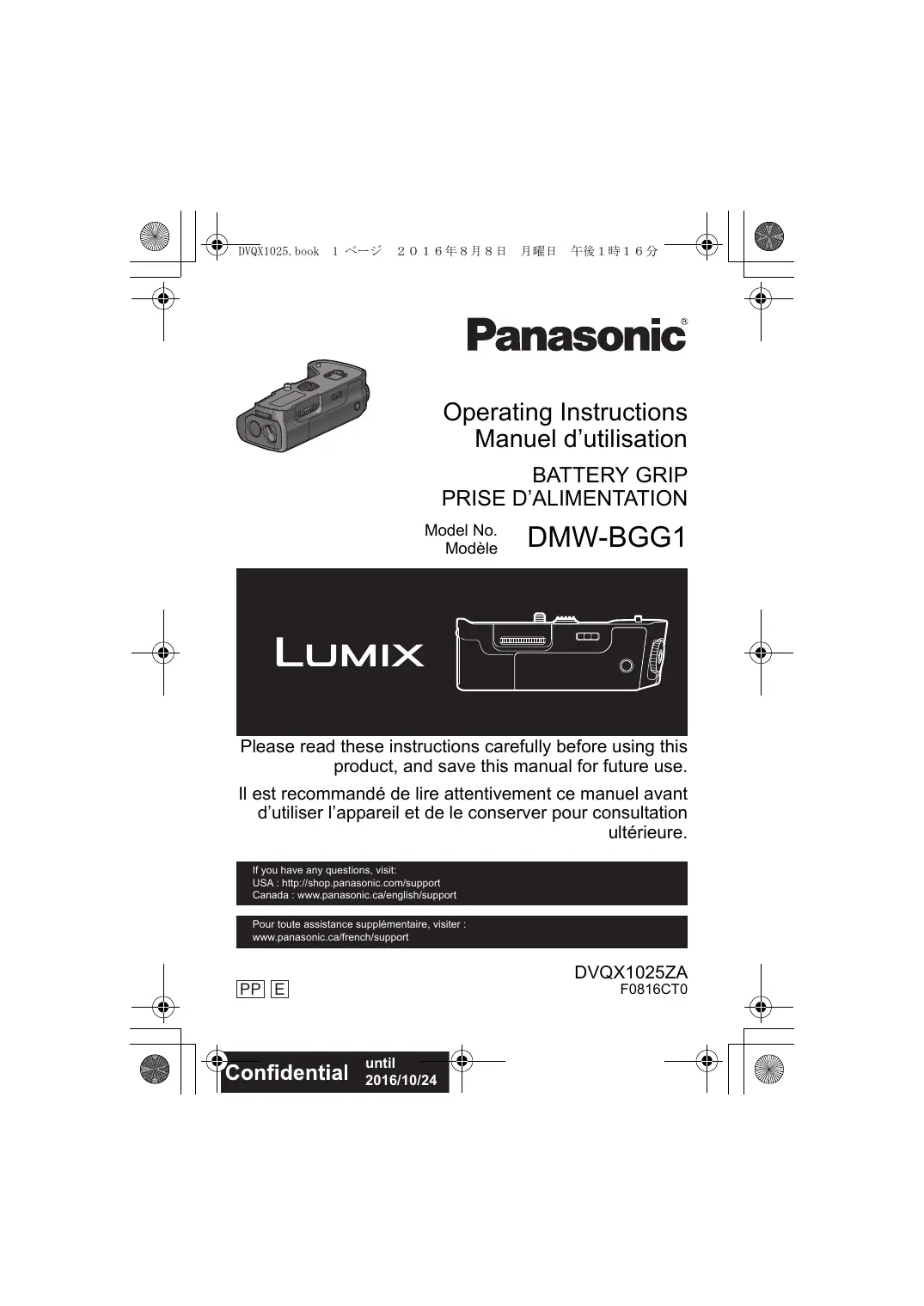 DMW-BGG1E - Accessoire photo PANASONIC - Notice d'utilisation et mode d'emploi gratuit