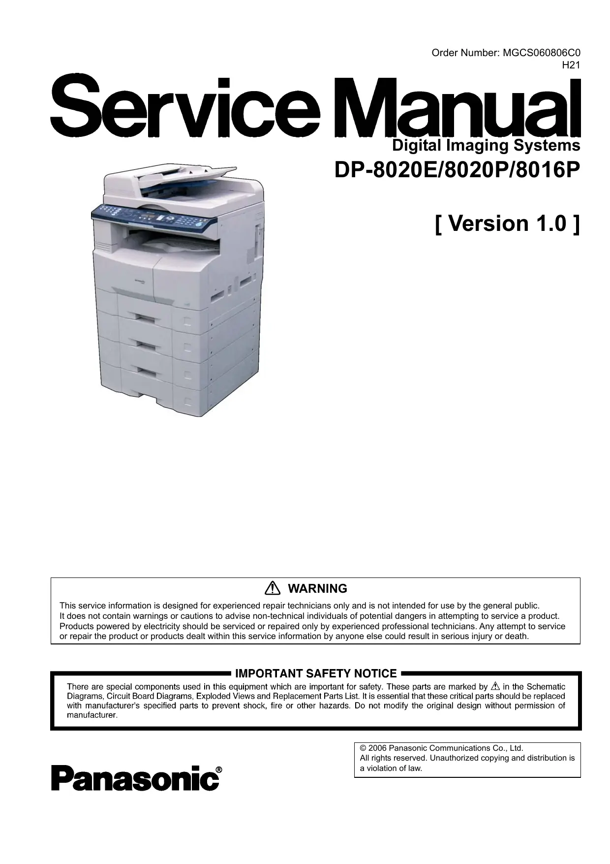 Retrouvez gratuitement la notice de l'appareil DP 8020E PANASONIC au format PDF.