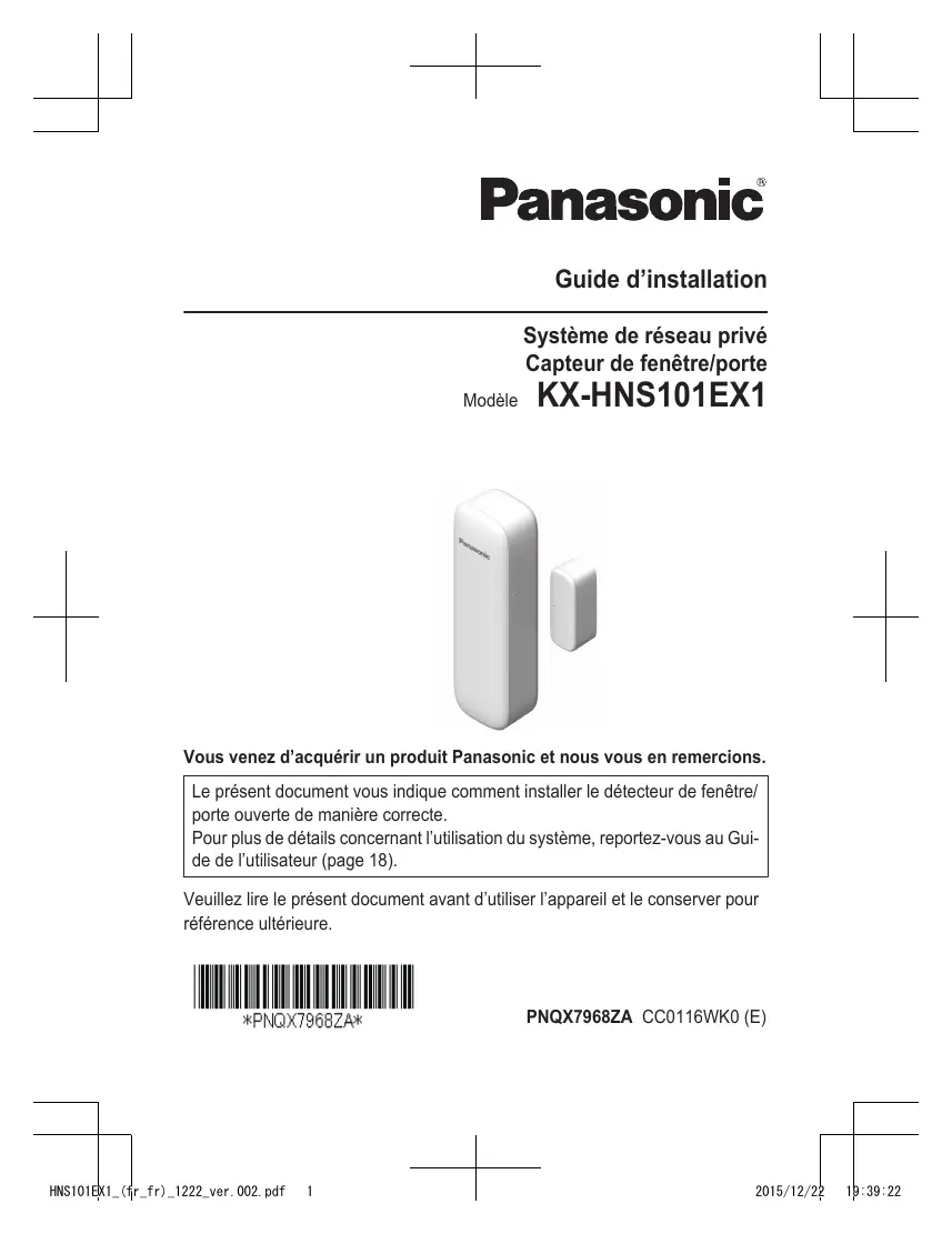 KX-HNS101EX1 - Détecteur de porte/fenêtre PANASONIC - Notice d'utilisation et mode d'emploi gratuit