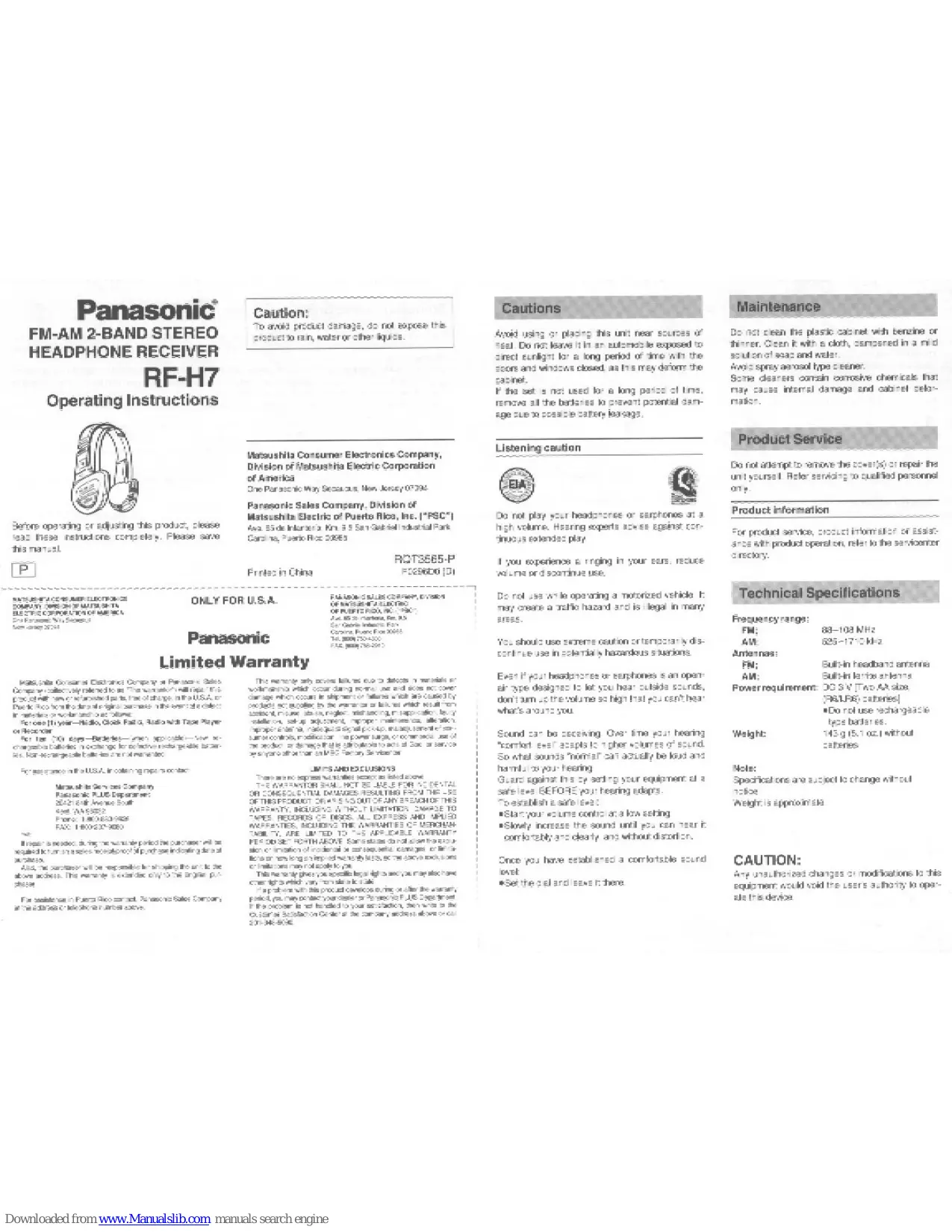 Retrouvez gratuitement la notice de l'appareil RX H7 PANASONIC au format PDF.