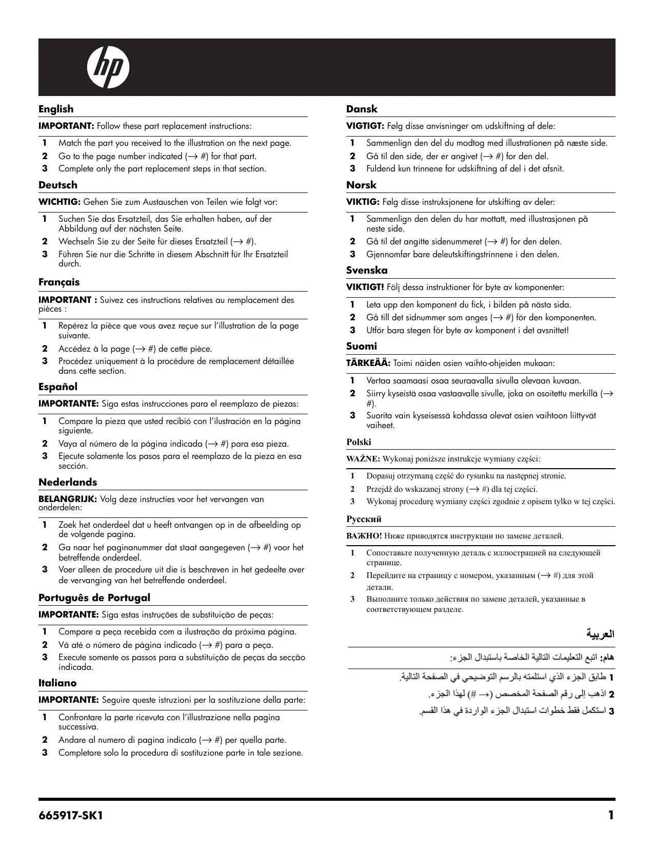 Accédez à la page (→ #) de cette pièce. Procédez uniquement à la procédure de remplacement détaillée dans cette section. Español IMPORTANTE: Siga estas instrucciones para el reemplazo de piezas: