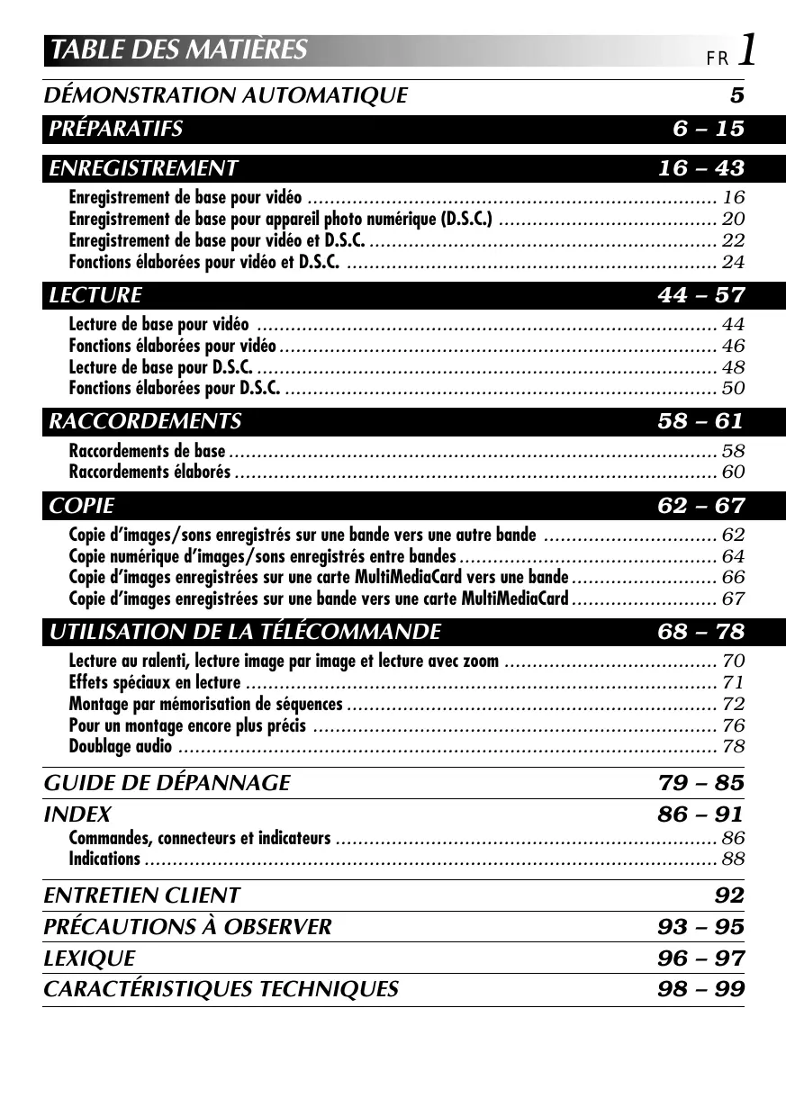 • Enregistrement de base pour vidéo et D.S.C p. 22