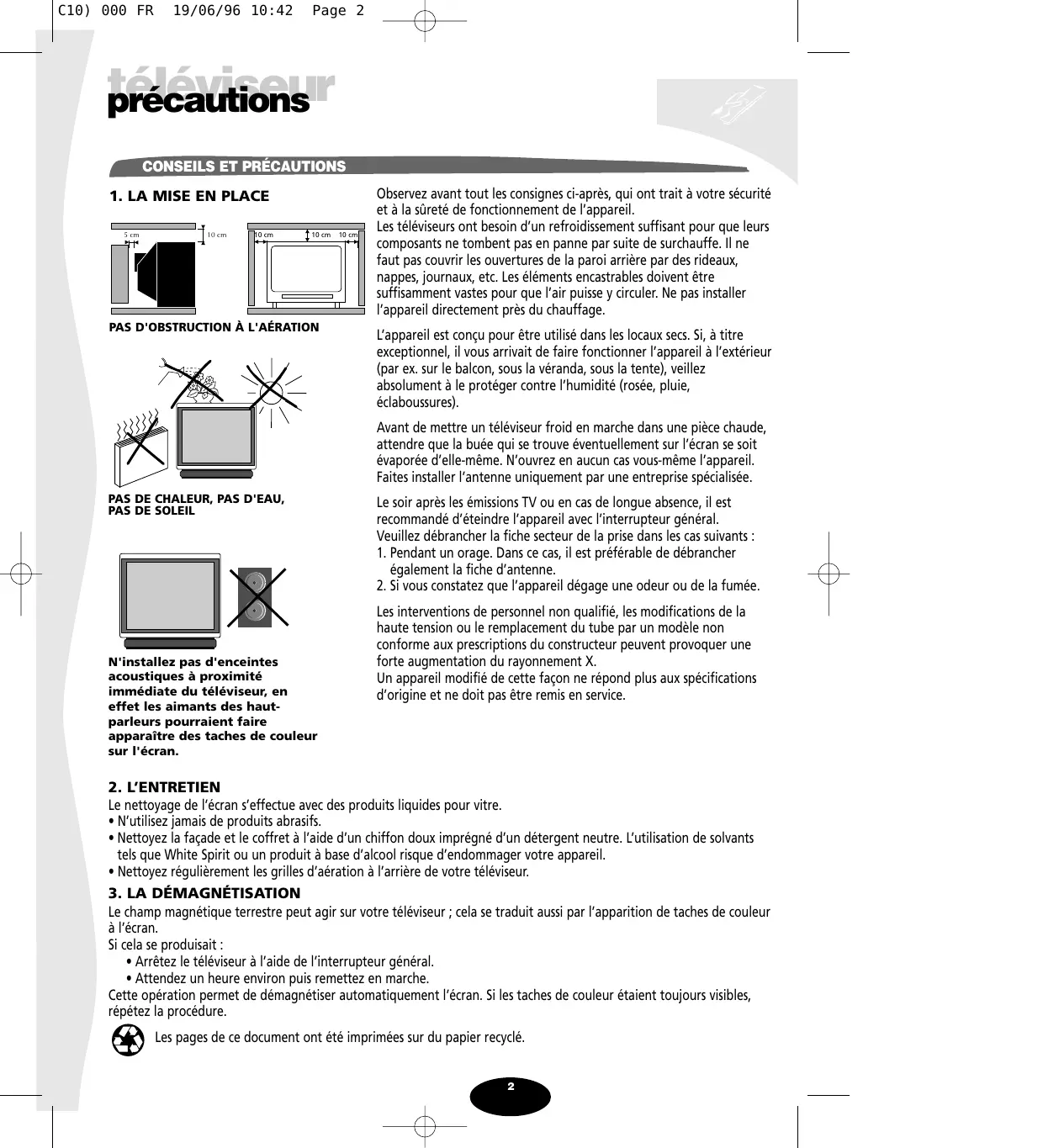 C10) 000 FR 19/06/96 10:42 Page 2 téléviseur précautions