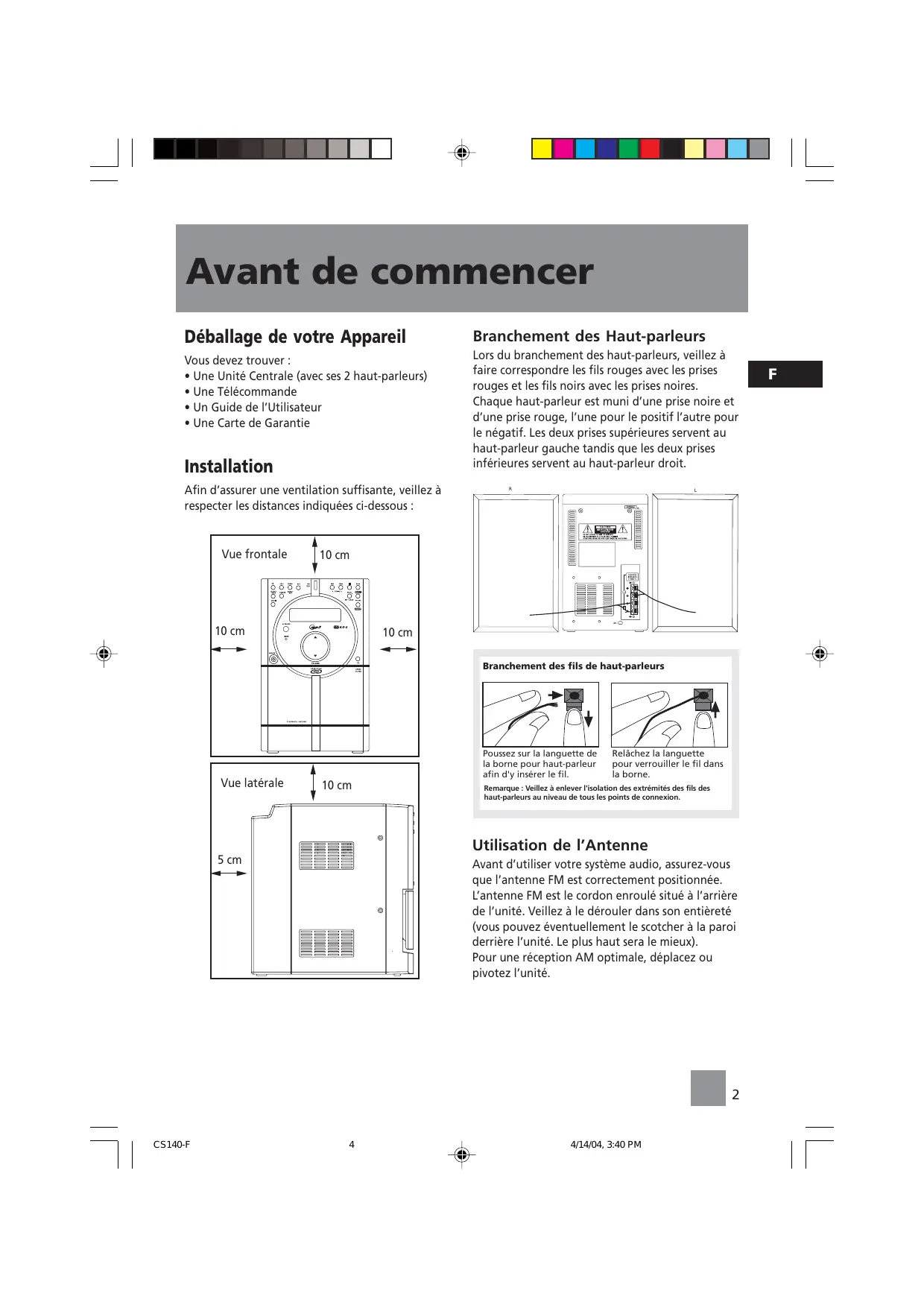4/14/04, 3:40 PM Avant de commencer Déballage de votre Appareil Branchement des Haut-parleurs Vous devez trouver :