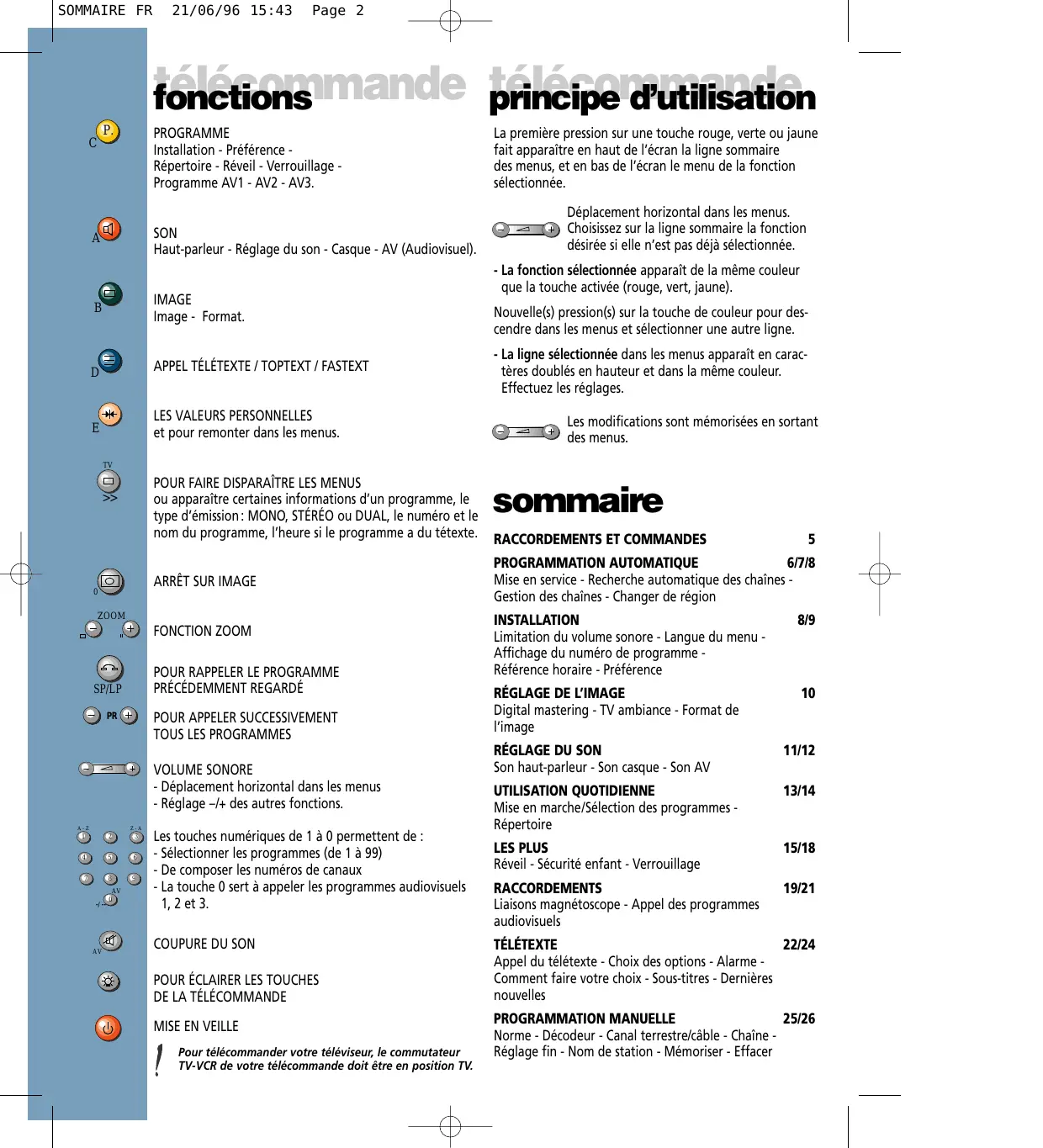 SOMMAIRE FR 21/06/96 15:43 Page 2 télécommande télécommande fonctions principe d’utilisation