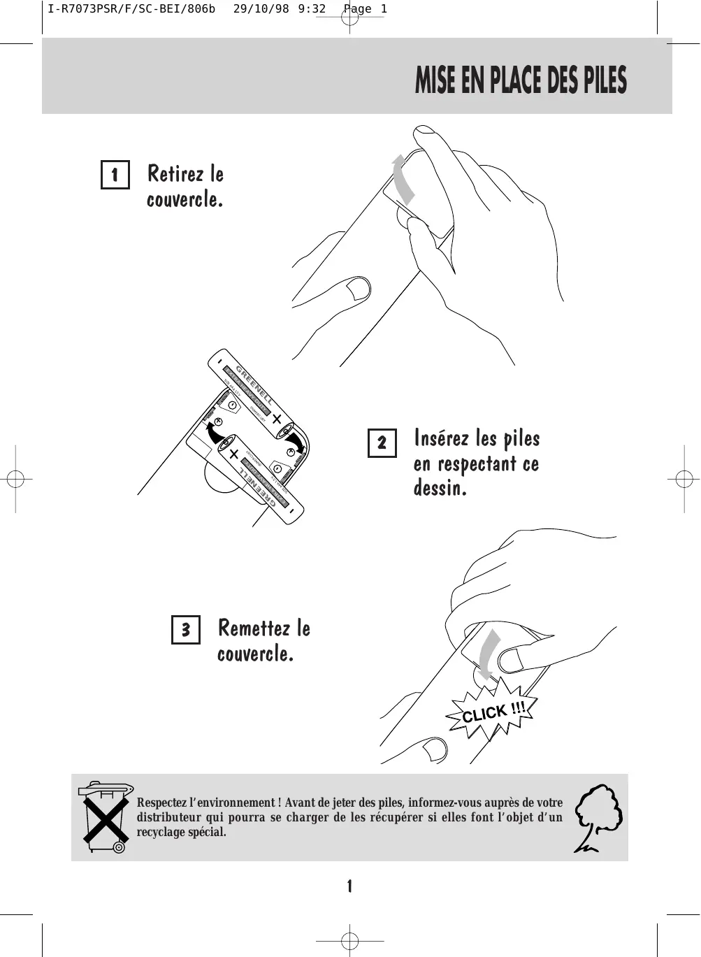 Covers R7073PSR 29/10/98 9:30 Page IG 1 F r a n ç a i s Prière de lire ces instructions avant toute opération!