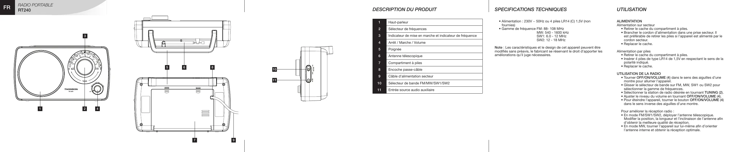 Retrouvez gratuitement la notice de l'appareil RT240 THOMSON au format PDF.