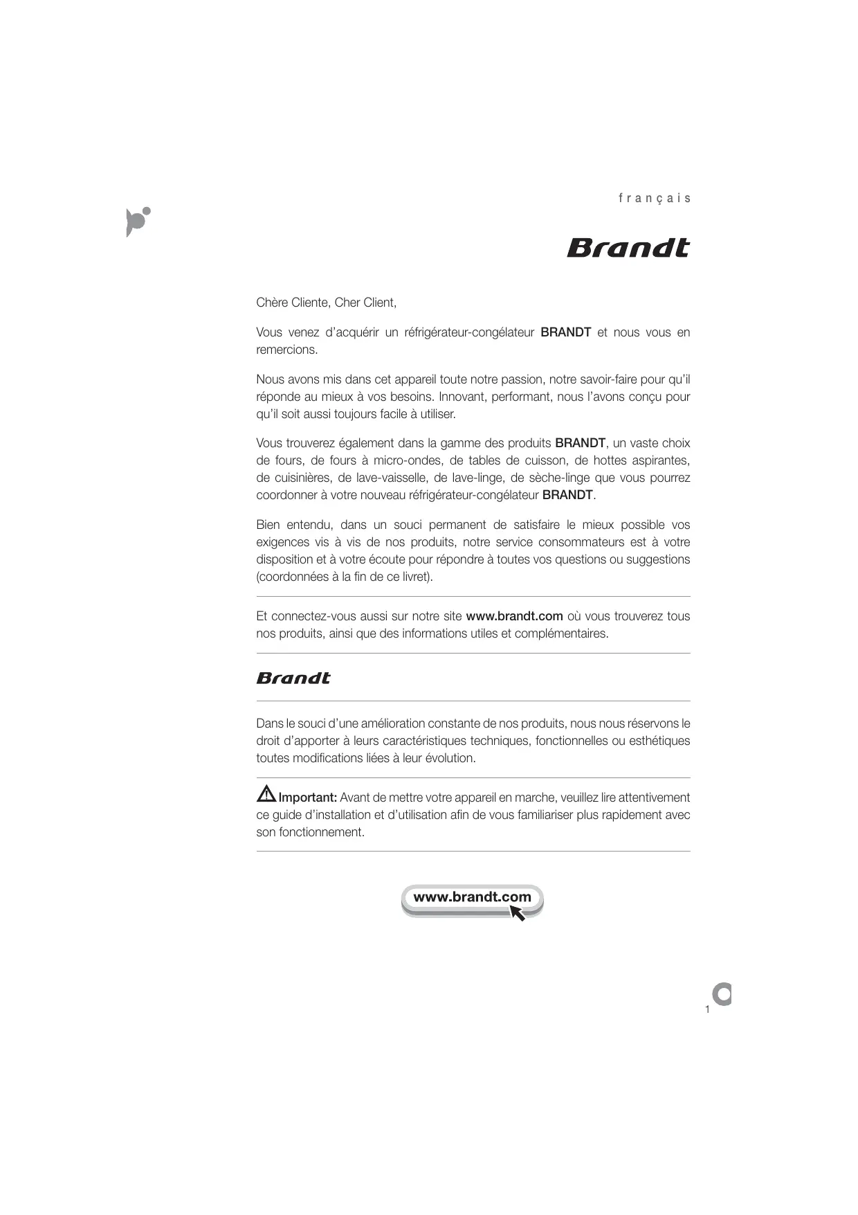 Retrouvez gratuitement la notice de l'appareil BFL3704DW BRANDT au format PDF.