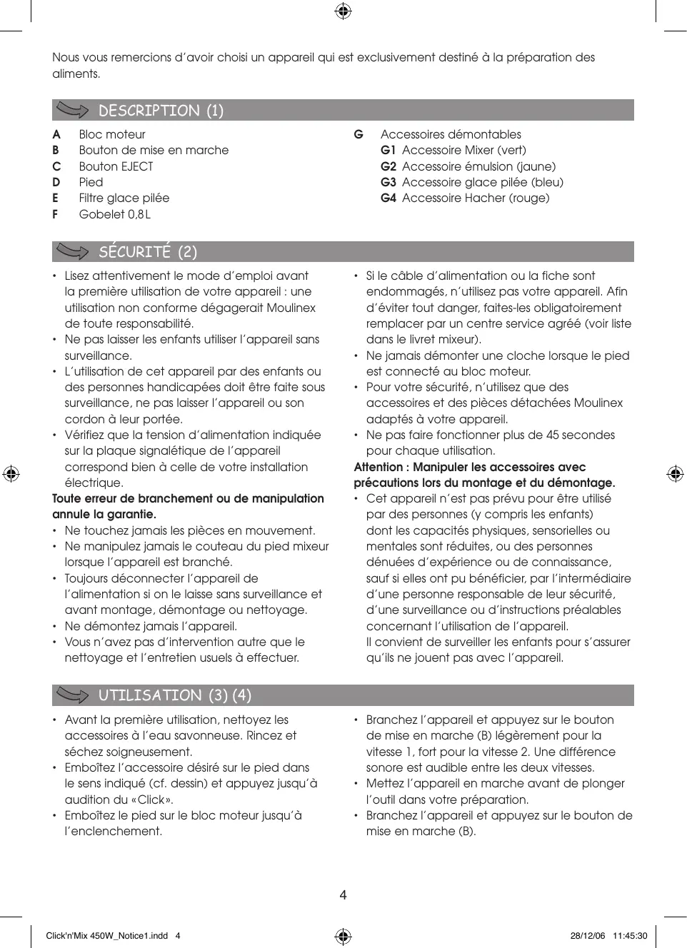 MODE D'EMPLOI CLICK AND MIX MOULINEX