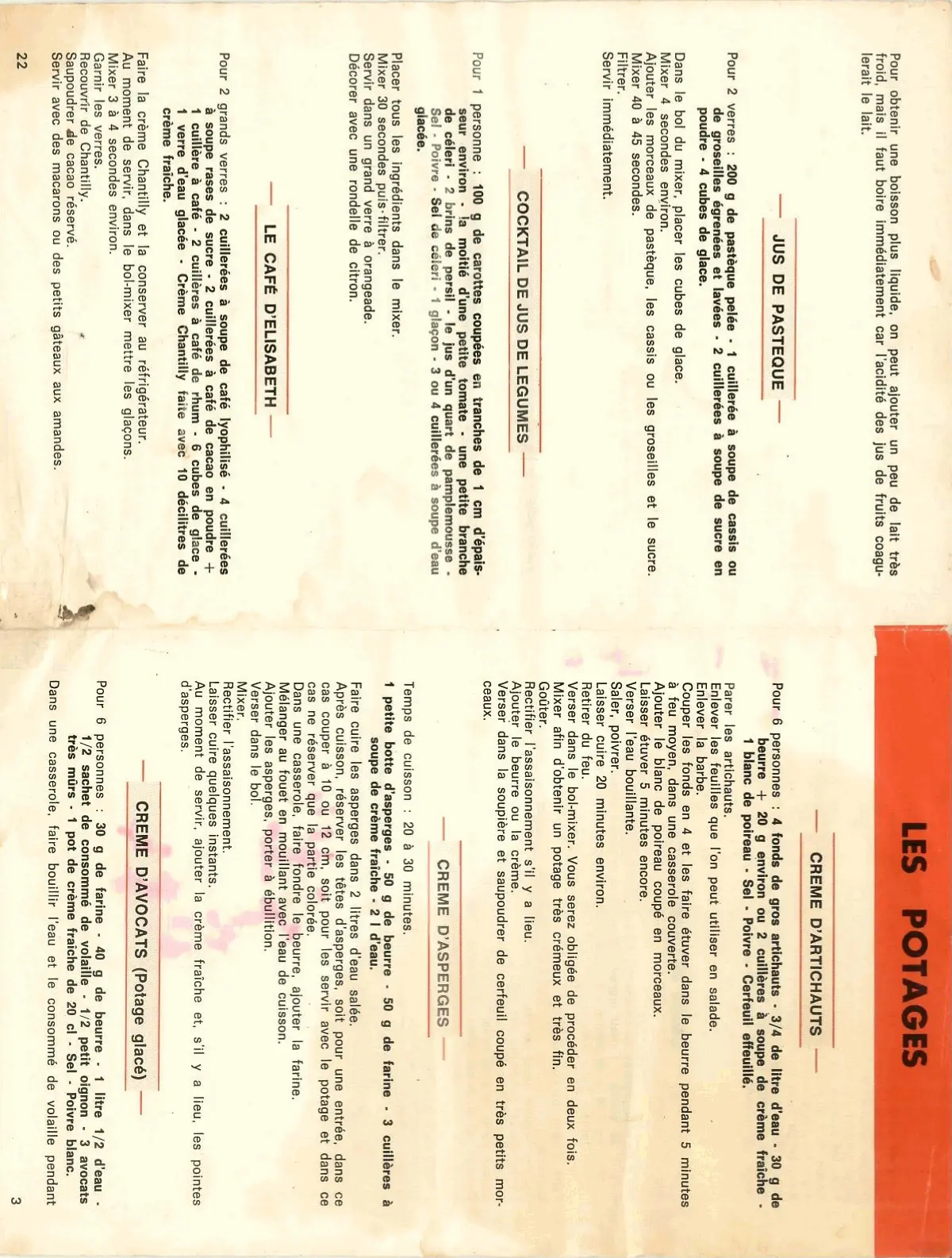 | Soupe de crosson | 6 | — Sorbet à la tomate (aperitif) | 16 |